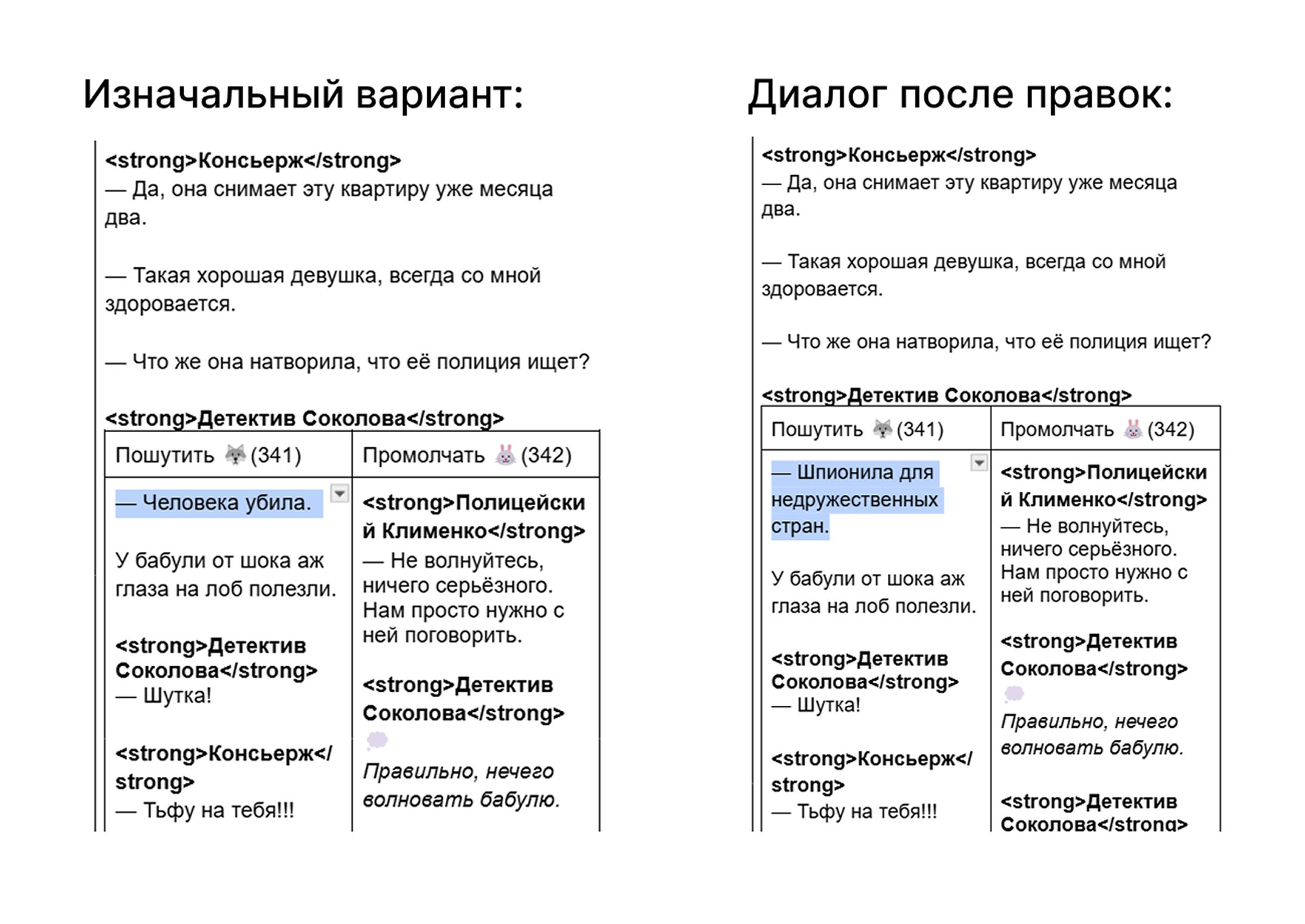Бывали случаи, когда изначальный вариант текста оказывался довольно дерзким, и заказчик просил смягчить углы. Хоть это и снижает качество раскрытия персонажей, мы относились к таким правкам с пониманием: бренд просто заботится о своей репутации.