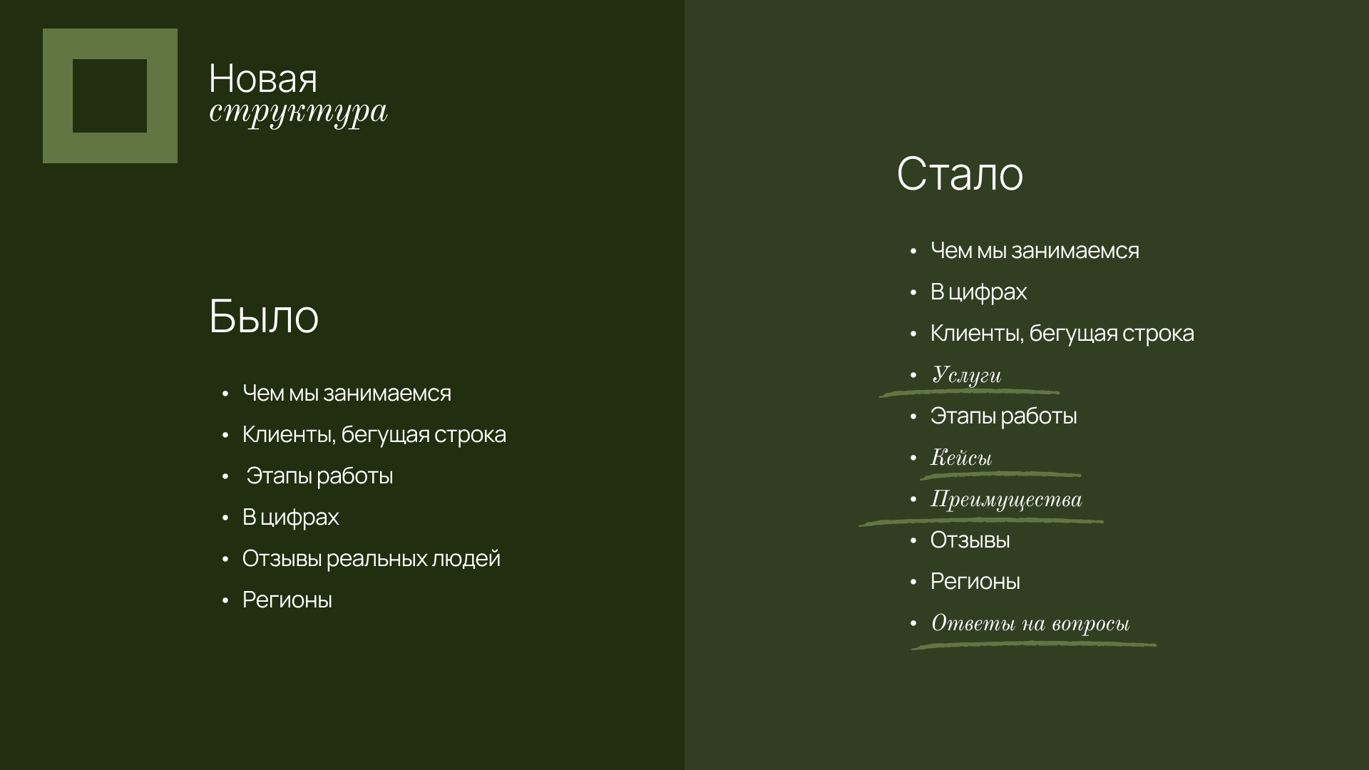 — Создан цифровой фундамент. У компании появился качественный, управляемый актив в интернете, полностью готовый к дальнейшему продвижению, включая SEO-оптимизацию и запуск рекламных кампаний;