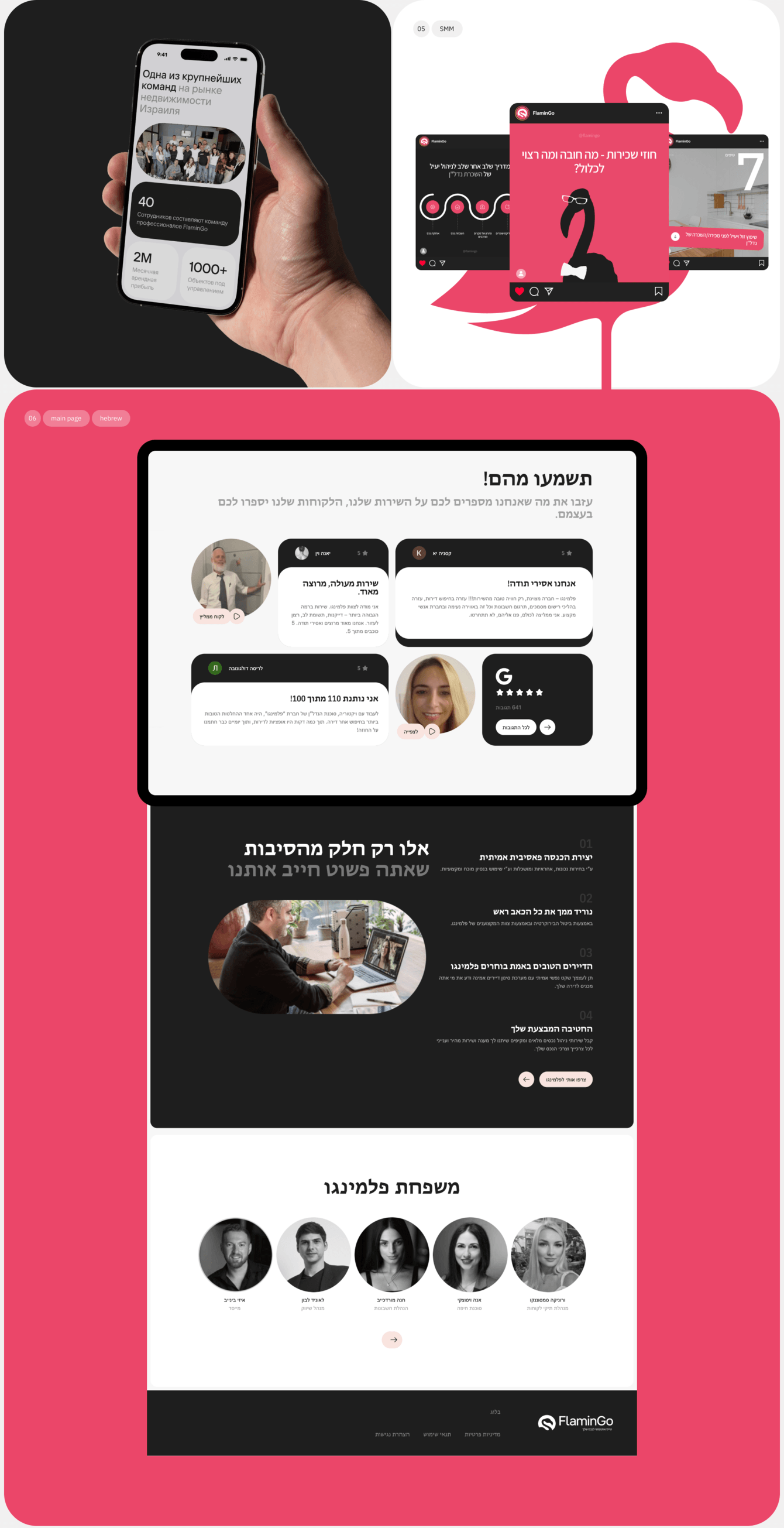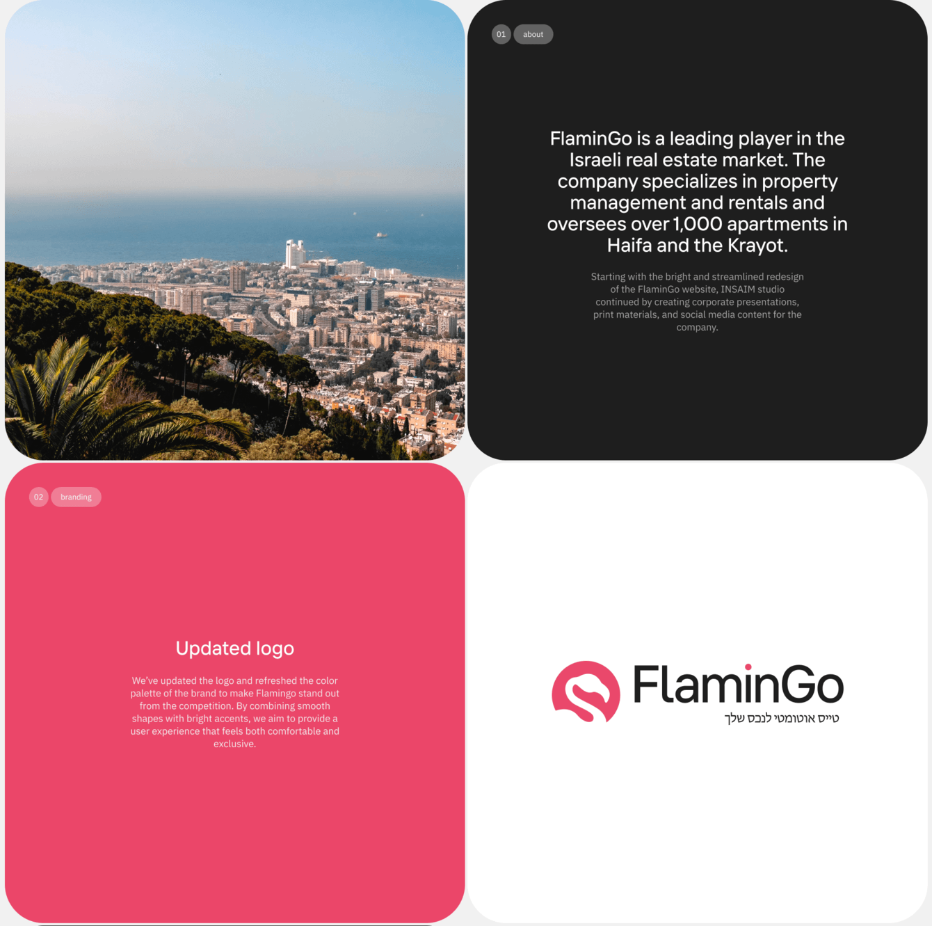 FlaminGo — известное израильское агентство недвижимости с яркой айдентикой: запоминающимся талисманом и фирменным розовым цветом.