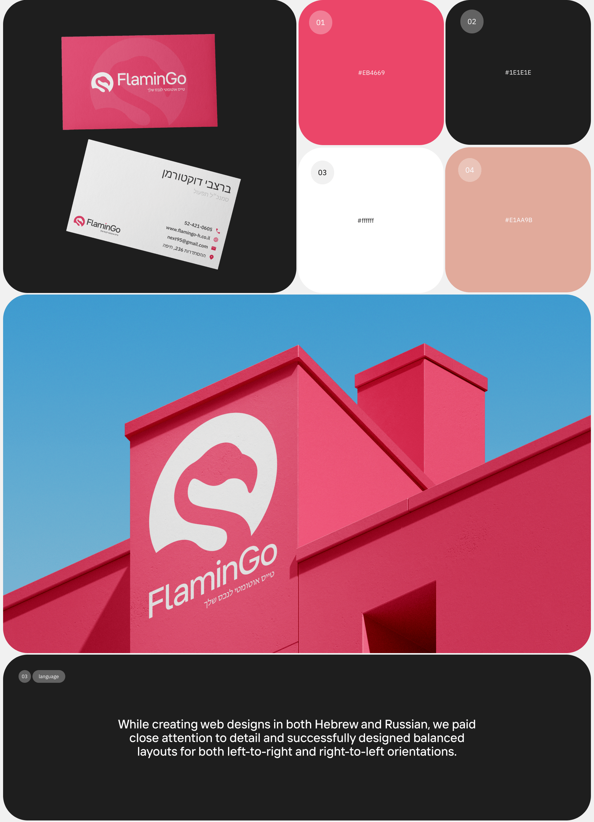 Мы объединили фирменный стиль FlaminGo с трендовыми решениями, чтобы сайт выглядел свежо, но оставался узнаваемым.