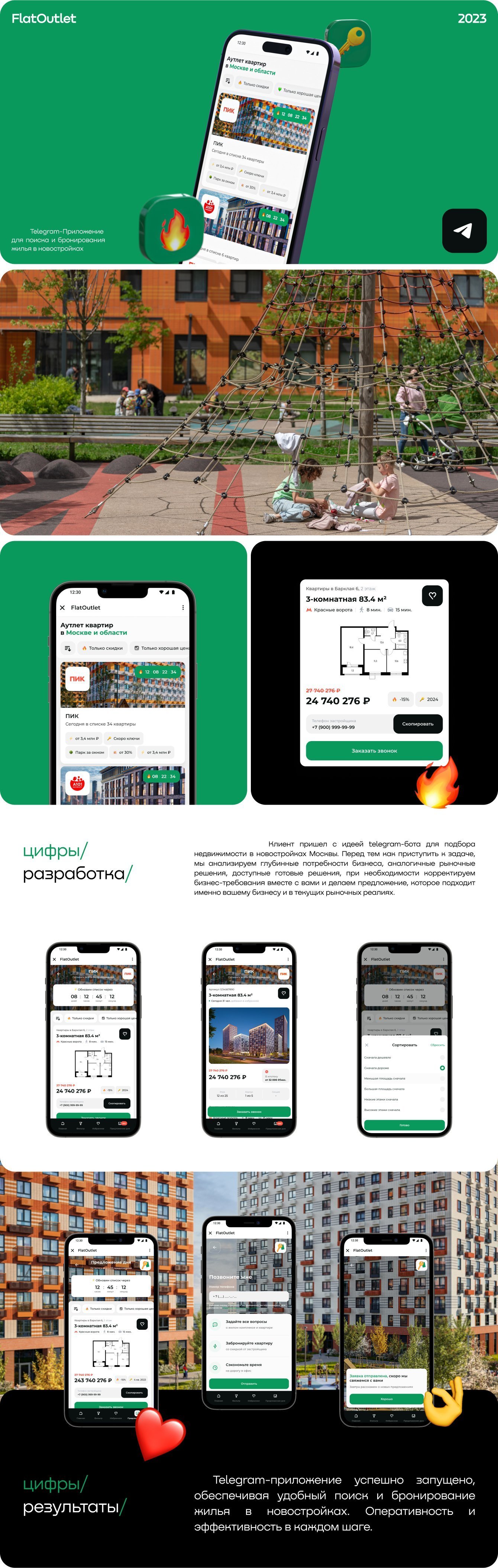 В нашем Telegram-приложении для поиска жилья в новостройках вы сможете легко использовать умные фильтры прямо в чате, записываться на показы объектов, а также получать карточки недвижимости с подробной информацией, фотографиями и планами помещений. Весь процесс поиска и бронирования становится максимально удобным и эффективным.