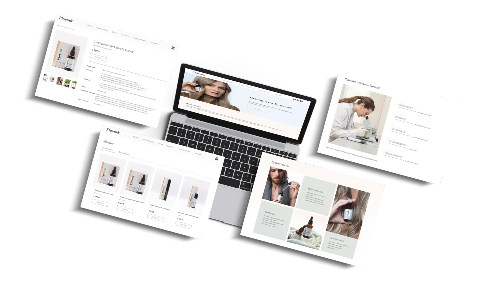 Перед началом работы мы провели анализ рынка косметической и смежных отраслей. Посмотрели, как позиционируют себя производители аналогичной продукции в России и во всем мире. Что делают лидеры, чтобы прочно удерживать свои позиции на протяжении долгих лет. Как позиционируются бренды в digital-пространстве, чтобы быть узнаваемыми, заметными и давать своим клиентам уверенность в надежности и качестве своей продукции. На основании этих данных мы разработали план развития и позиционирования бренда Floemá® в России.