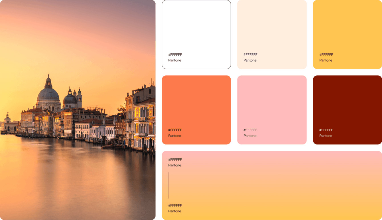 Палитра основана на теплых оттенках яркого итальянского колорита, помогая нам окунуться в яркую и атмосферную культуру.