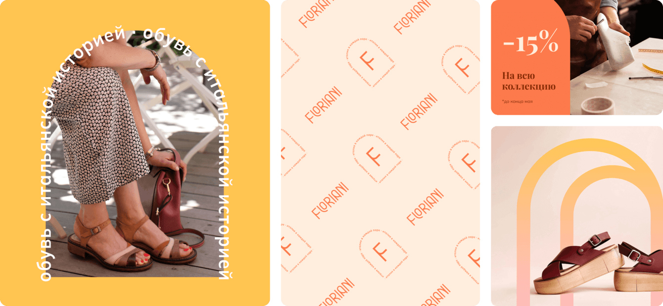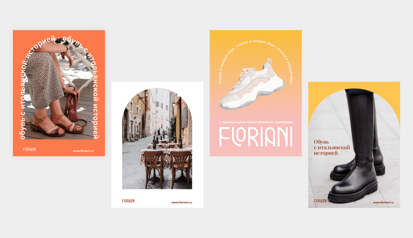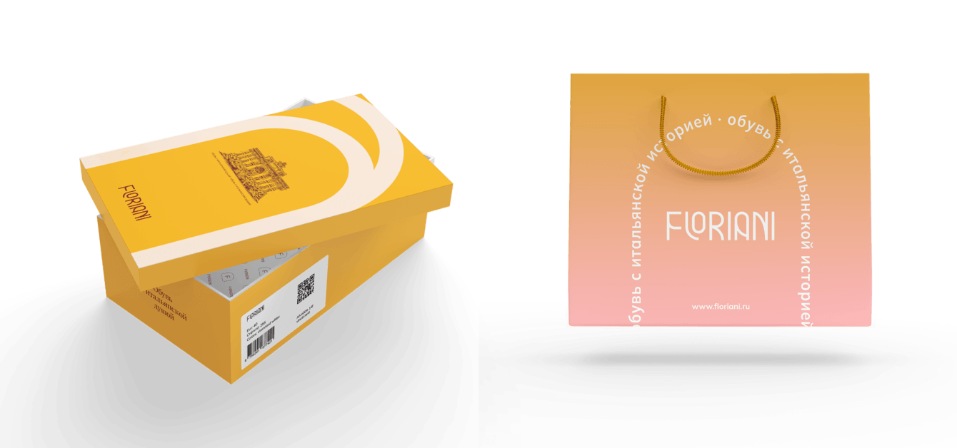 Для классической линейки мы использовали основной логотип Floriani, а также паттерн, состоящий из стилизованных арок. Этот дизайн подчеркивает элегантность и узнаваемость бренда.