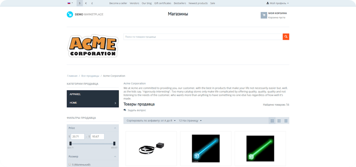 Вот так она выглядит в дефолтной версии CS-Cart Multi-Vendor