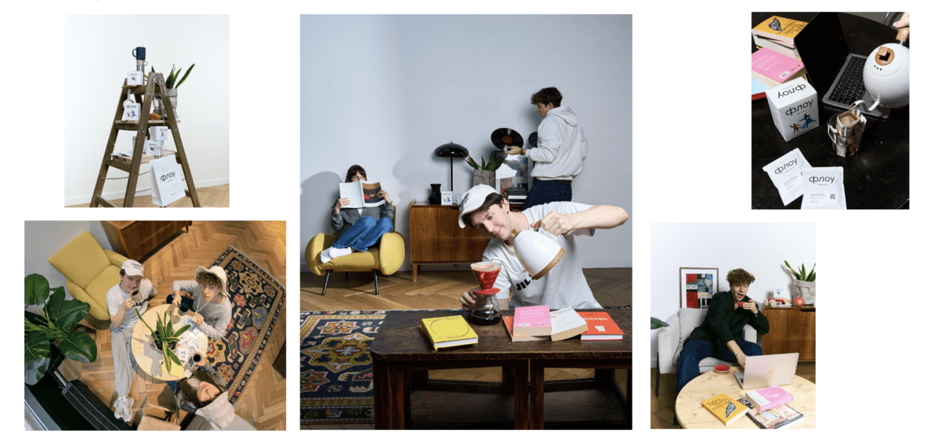 В рамках работы над визуальной частью контент-стратегии мы провели живую фотосъёмку с моделями, чтобы показать атмосферу кофейни и «живой» образ бренда. Снимки использовались для постов и сториз, создавая аутентичный и привлекательный визуальный контент.