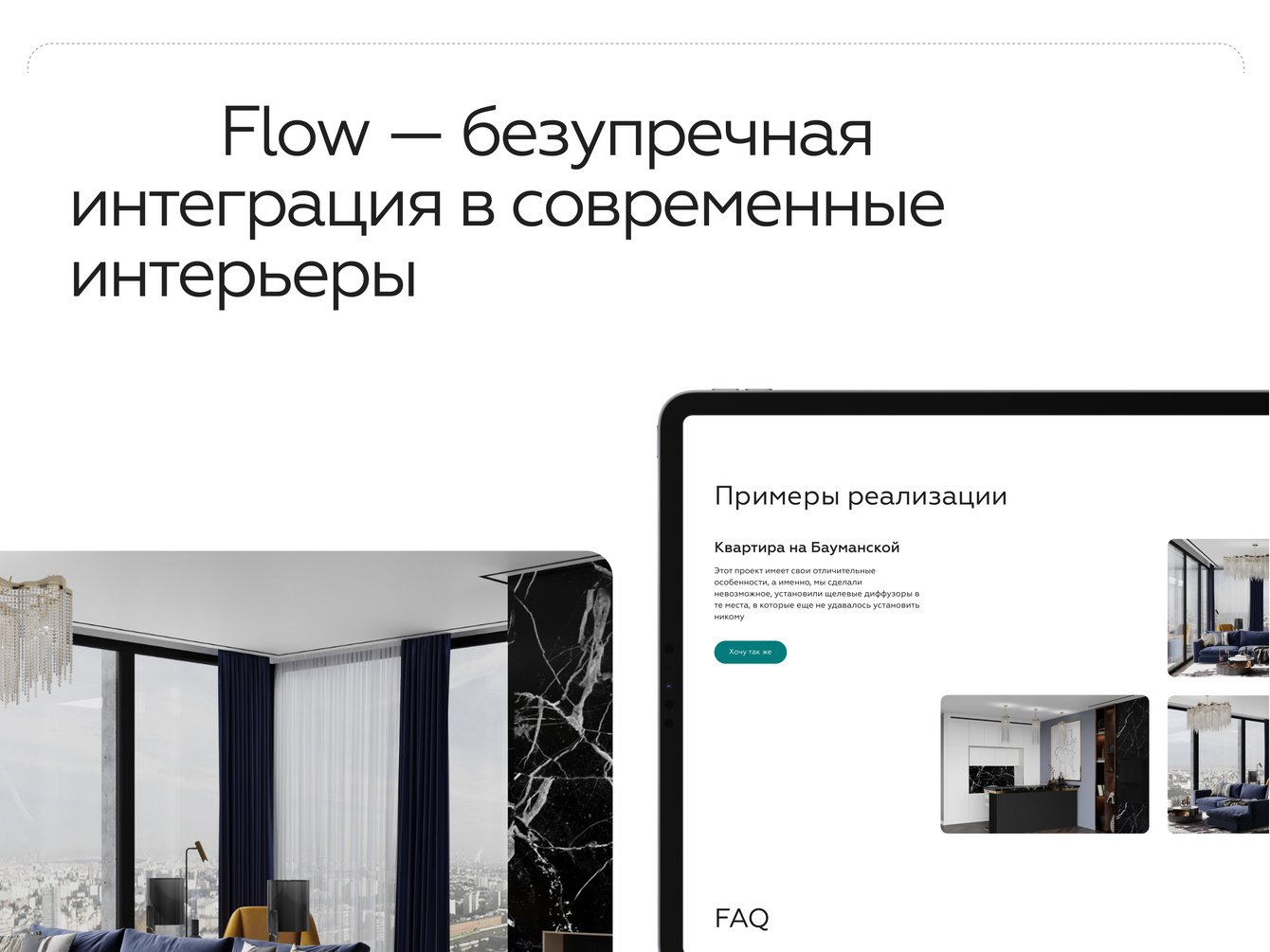 FLOW — один из тех проектов, где дизайн не просто упаковка, а продолжение сути продукта. Нам удалось выстроить минималистичную, но живую экосистему, где каждая деталь работает на идею: «воздух, которого не видно, но он делает пространство лучше».