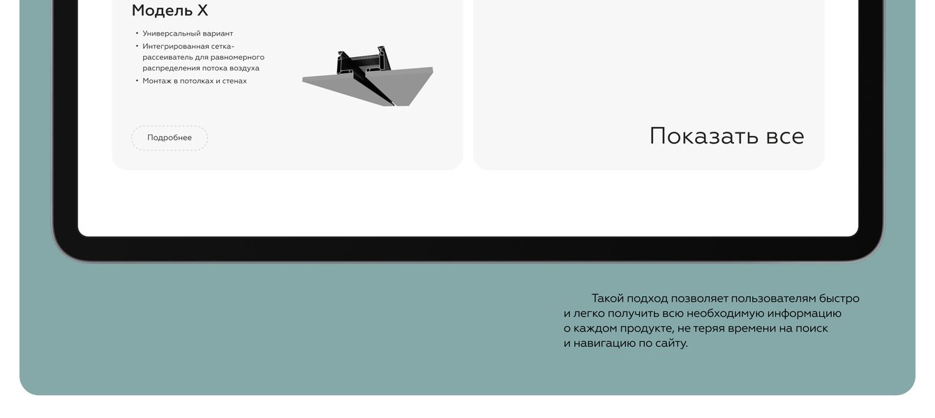 Создать минималистичный и технологичный сайт, который покажет продукт как часть современного интерьера. Нужно было разработать уникальный визуальный стиль, отразить экспертность и облегчить путь к заказу