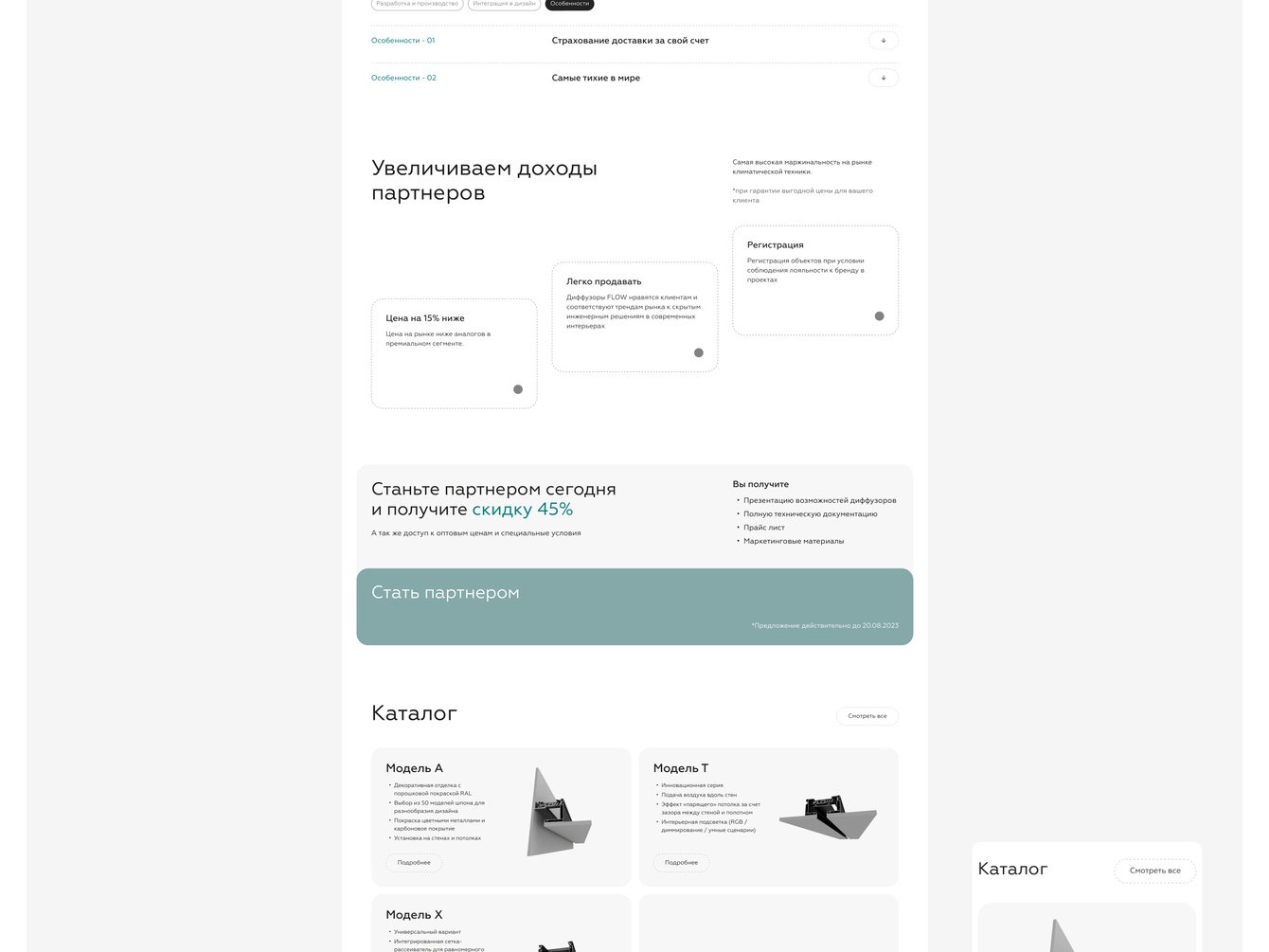 Сайт получился стильным, современным и идеально встраивающимся в коммуникацию с дизайнерами, архитекторами и конечными заказчиками.