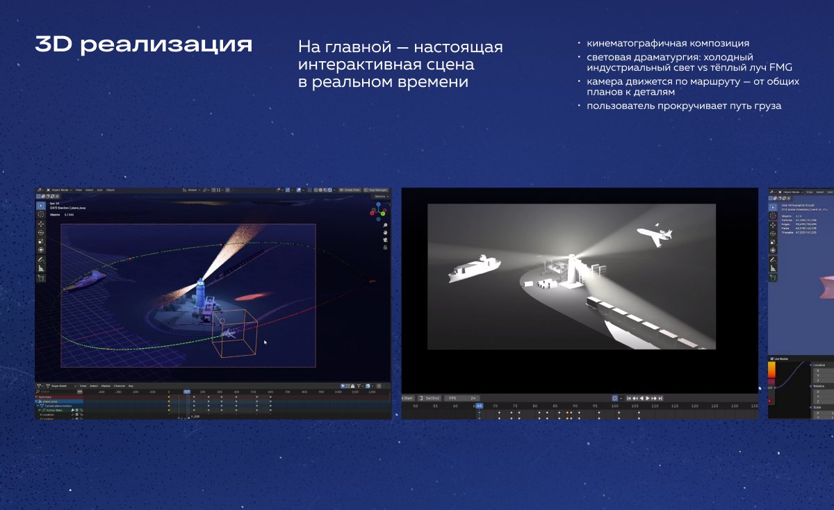 ✔️ синхронизировали 3D-пролёт со скроллом — пользователь буквально «прокручивает» путь груза.
