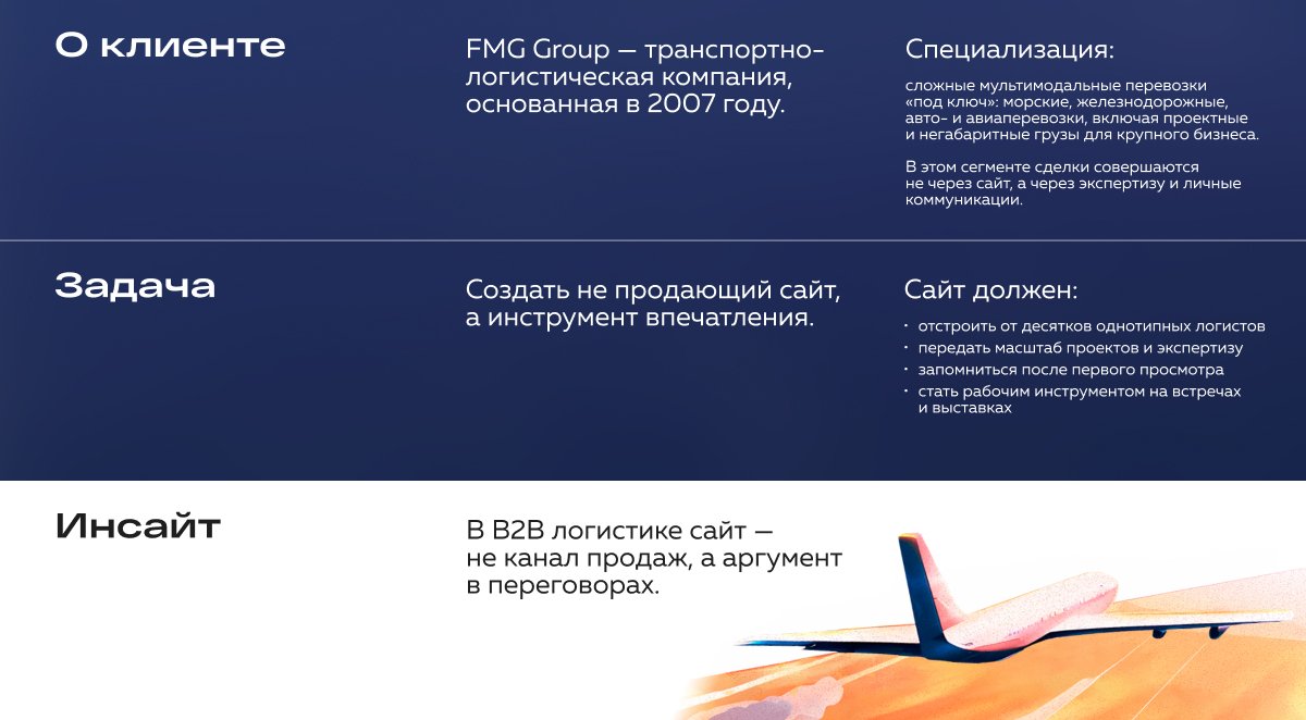 Фактически нужно было переосмыслить роль сайта в B2B-логистике — из канала лидогенерации в инструмент влияния на принятие решения.