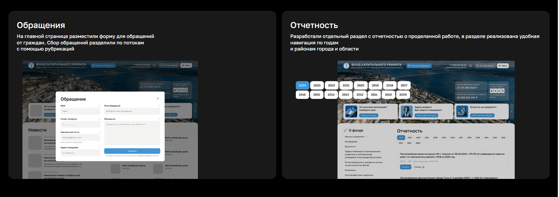 В результате совместной работы нам удалось создать по-настоящему удобный сайт для подачи обращений в фонд капитального ремонта.