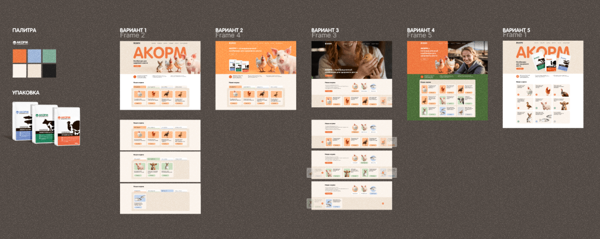 Мы оттолкнулись от сути продукта: комбикорма — это про баланс. Эту идею мы перенесли в digital — оформили её через строгую бенто-сетку и тёплую ретро-палитру. Получился визуал, который соединяет прошлое и будущее: стилистика ретро, но удобство и функционал — современный digital.
