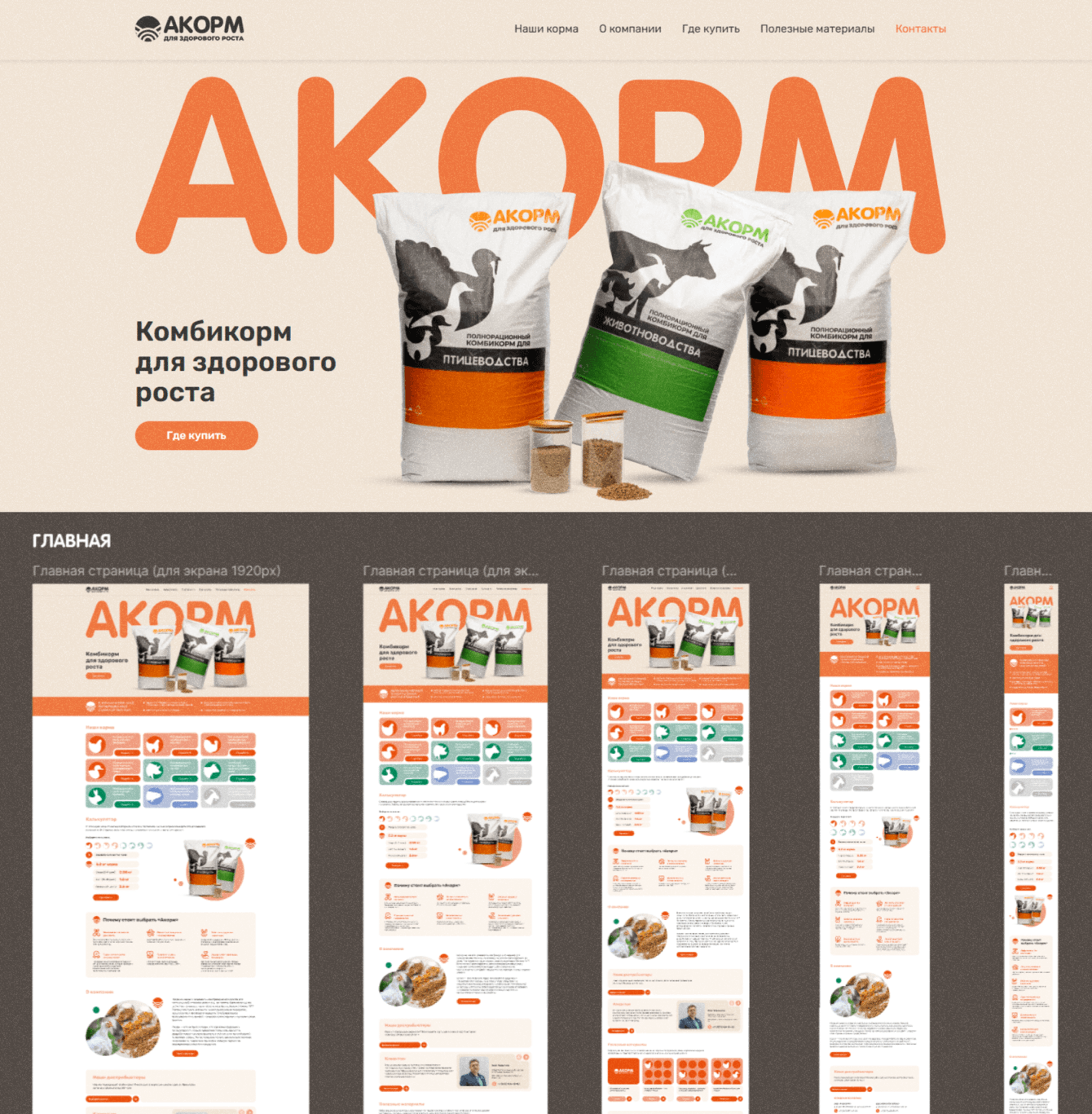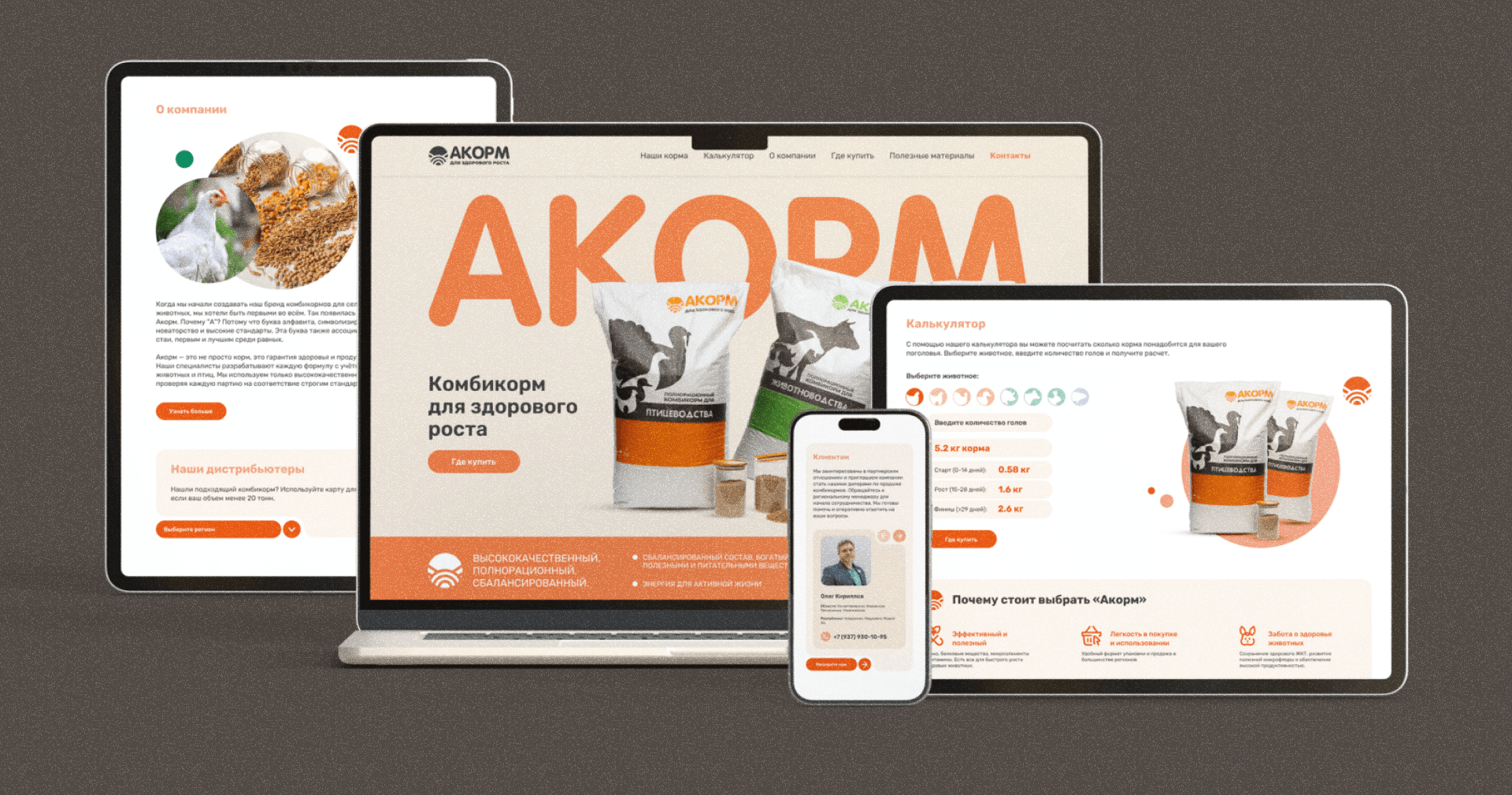 К нам обратились за созданием сайта для новой торговой марки «Акорм» — сбалансированных комбикормов высшего сорта.