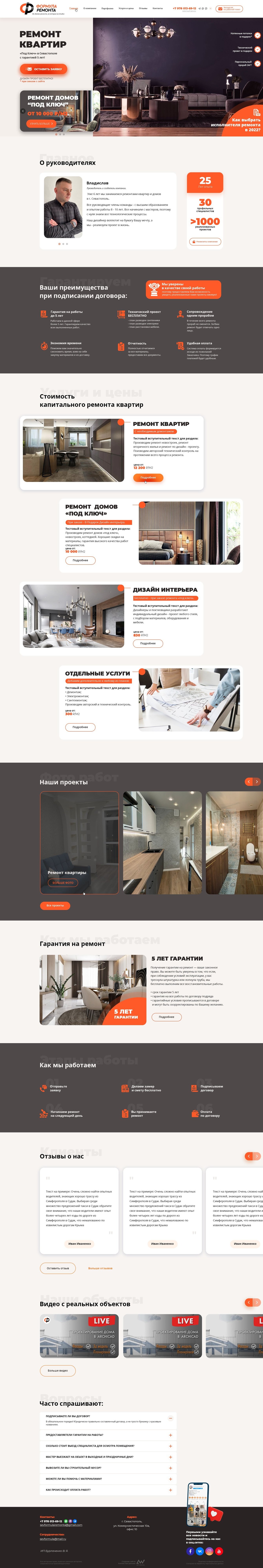 Полностью выполненный сайт под ключ "formula-sevremonta.ru"