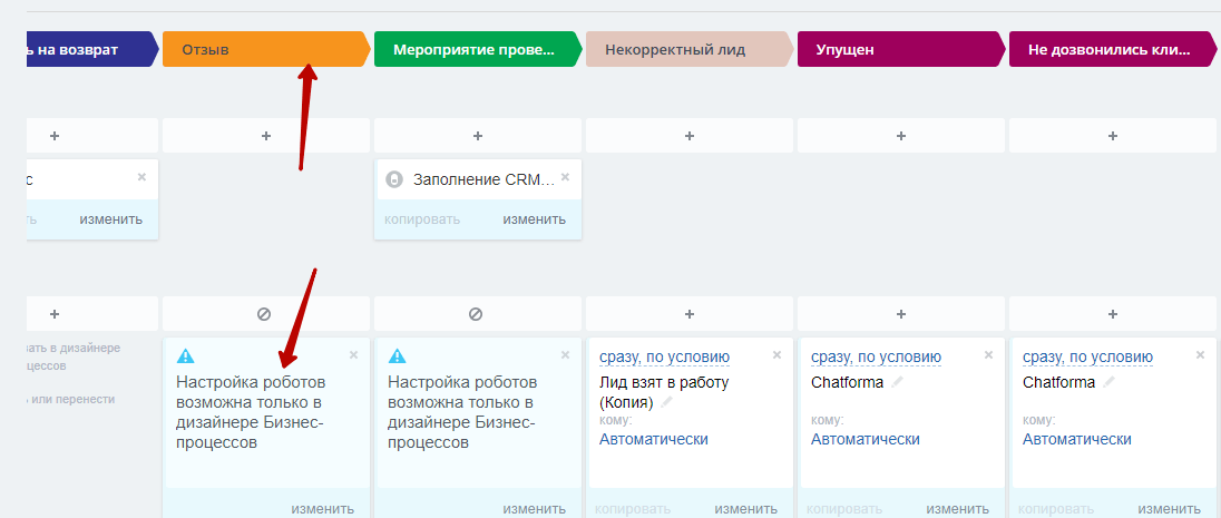 4. Автоматизировали несколько БП внутри воронке продаж.