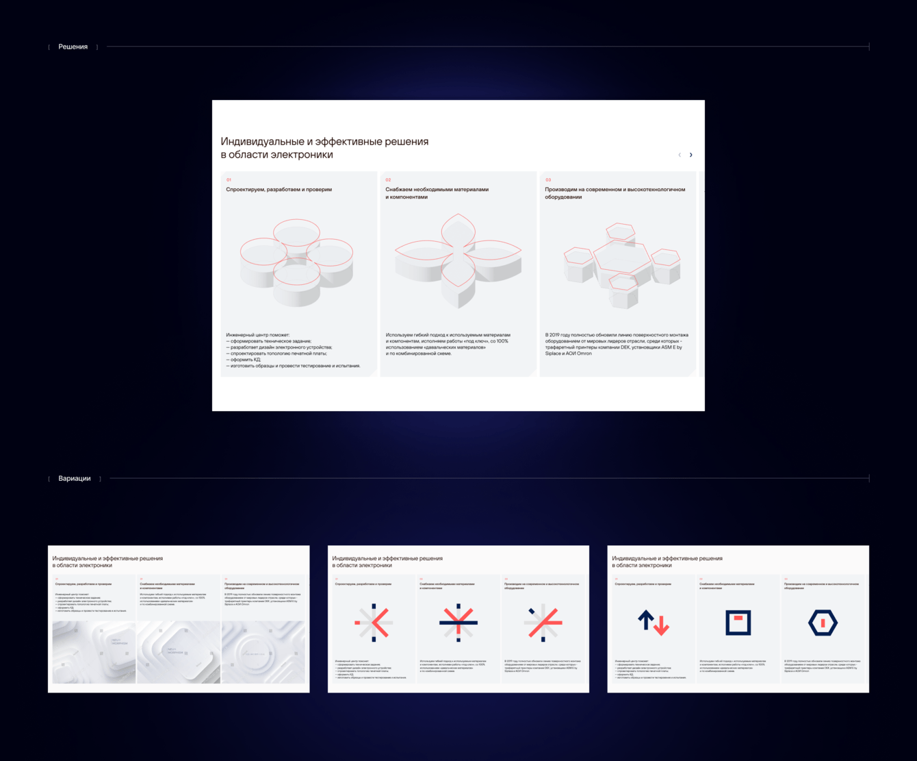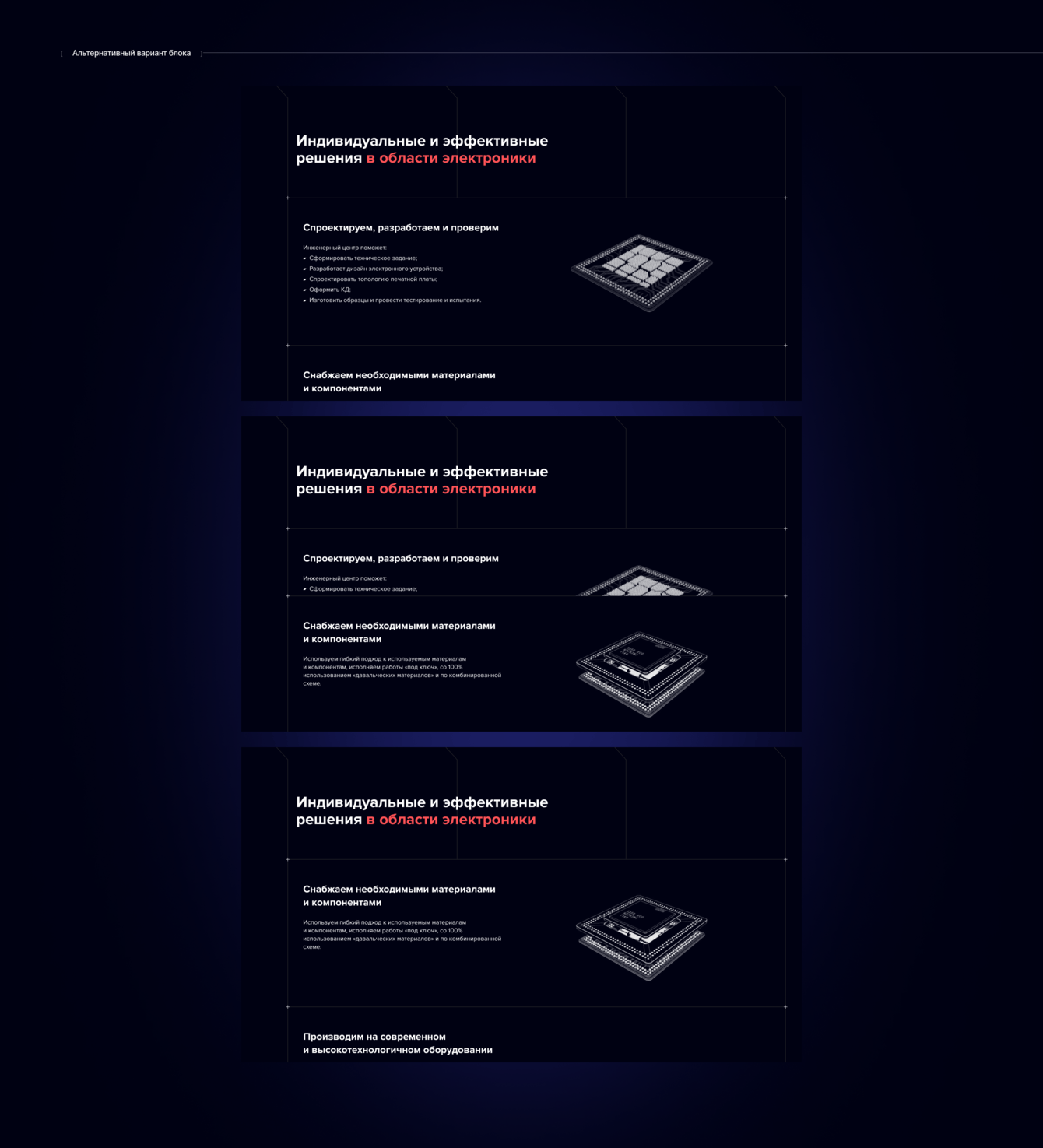 Альтернативный вариант: блок имеет центральную композицию и стилизованную линейную иллюстрацию, состоящую из частей плат.