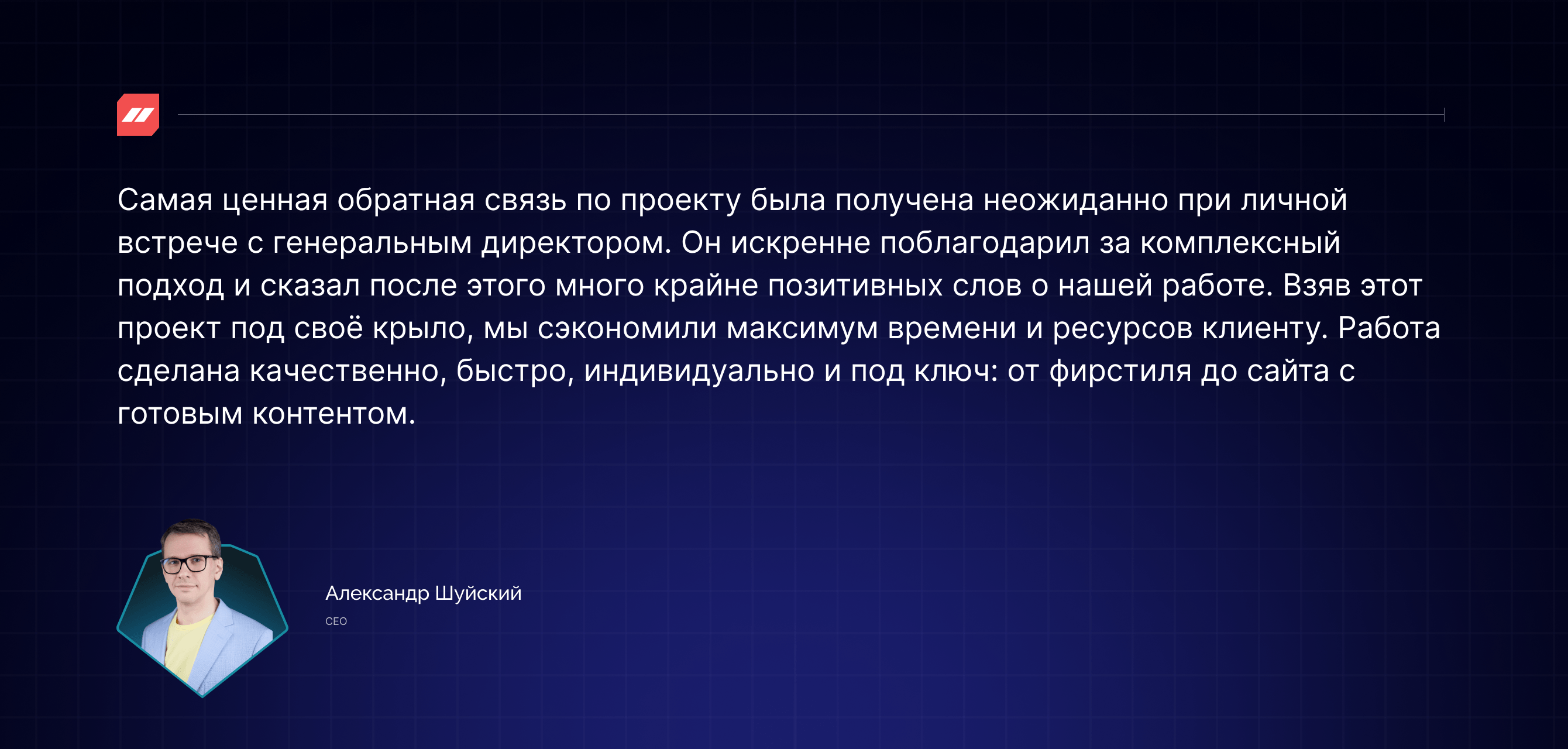 Мы внимательно подошли к задаче, чтобы описать сложные процессы и валидировать контент. В данной нише крайне узкая ЦА: технические специалисты и госслужащие. Поэтому, трастовые блоки и описание производственных процессов являются важной составляющей для принятия решения о сотрудничестве с компанией у ключевых клиентов. То есть в первую очередь предпочтительна информационная, содержательная, а не эмоциональная коммуникация, сдобренная уместными техническими терминами и данными.