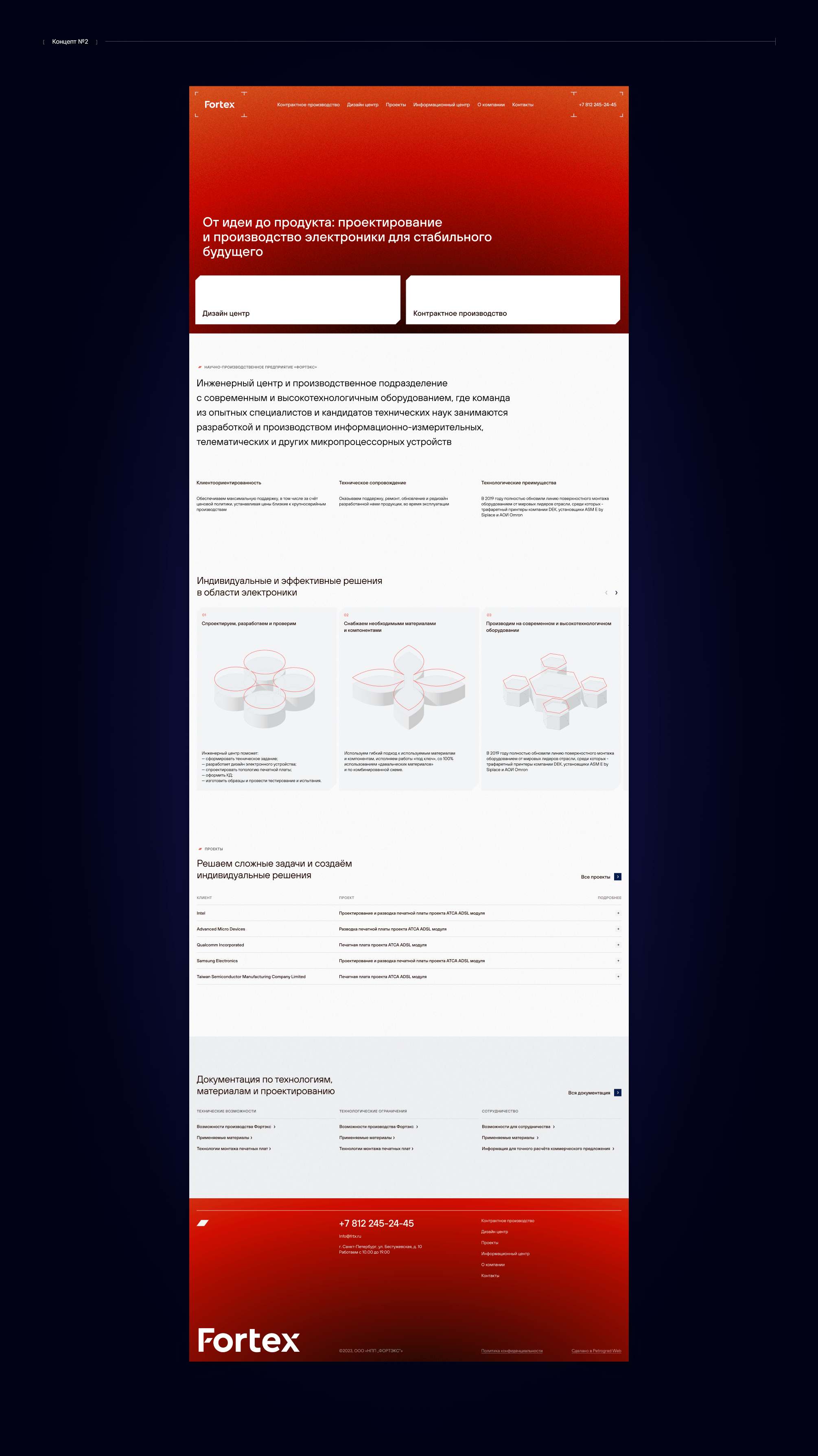 Отдельно стоит сказать о масштабе заказчика. Фортэкс – научно-производственное предприятие, занимающееся разработкой и производством информационно-измерительных модулей различного назначения. Заказчик работает с государственными структурами, крупными производственными предприятиями и осуществляет полный комплекс услуг: от разработки до выпуска готовой продукции.