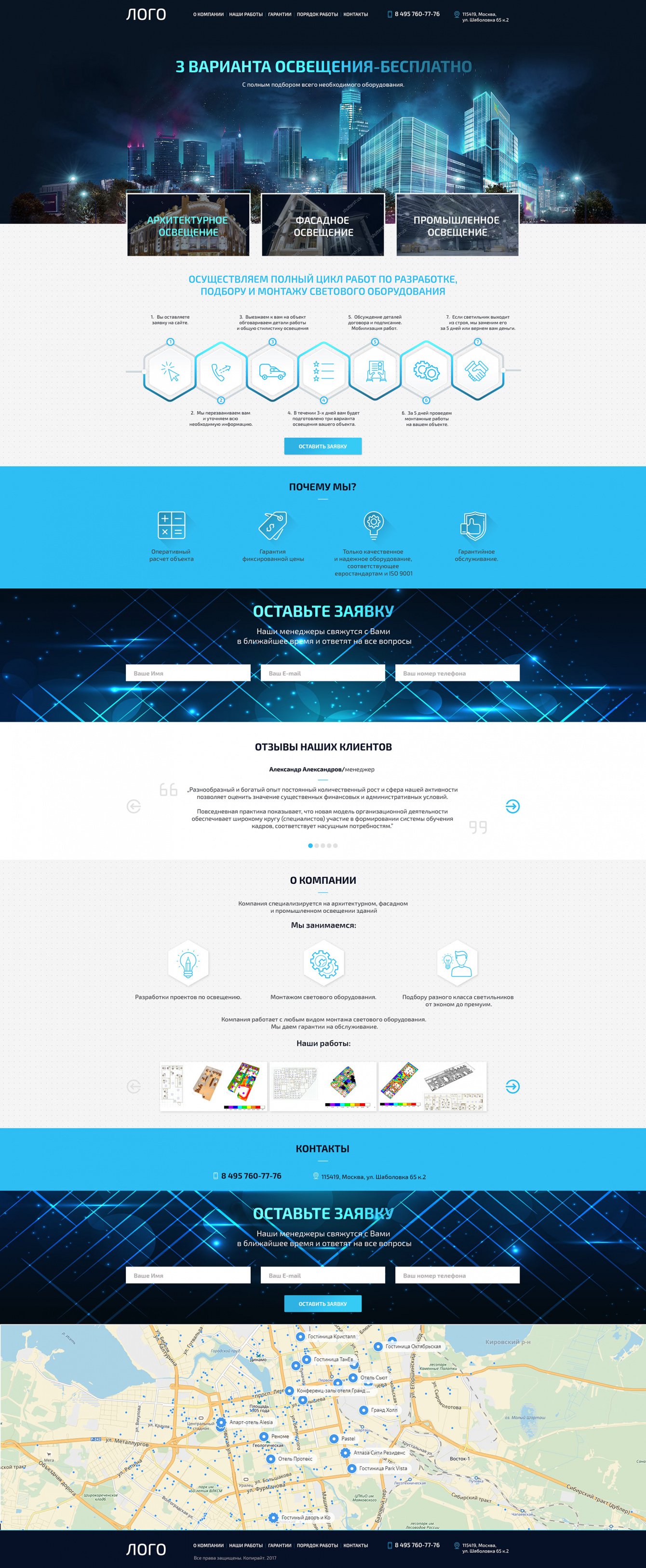 Нашей задачей было создание нового сайта для компании Фотон-М, занимающейся монтажом и наладкой светового оборудования.