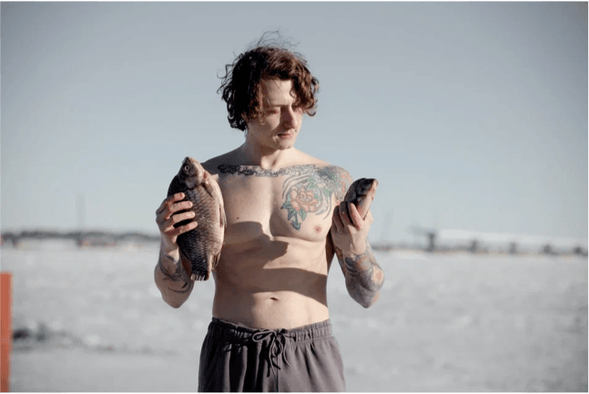 - съемка, стилизованная под рыбалку зимой, проходила на реке Амур, что на границе с Китаем