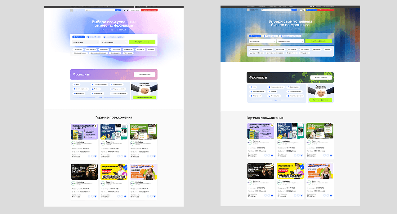 • переработали карточки франшиз и фильтры для улучшения конверсии;