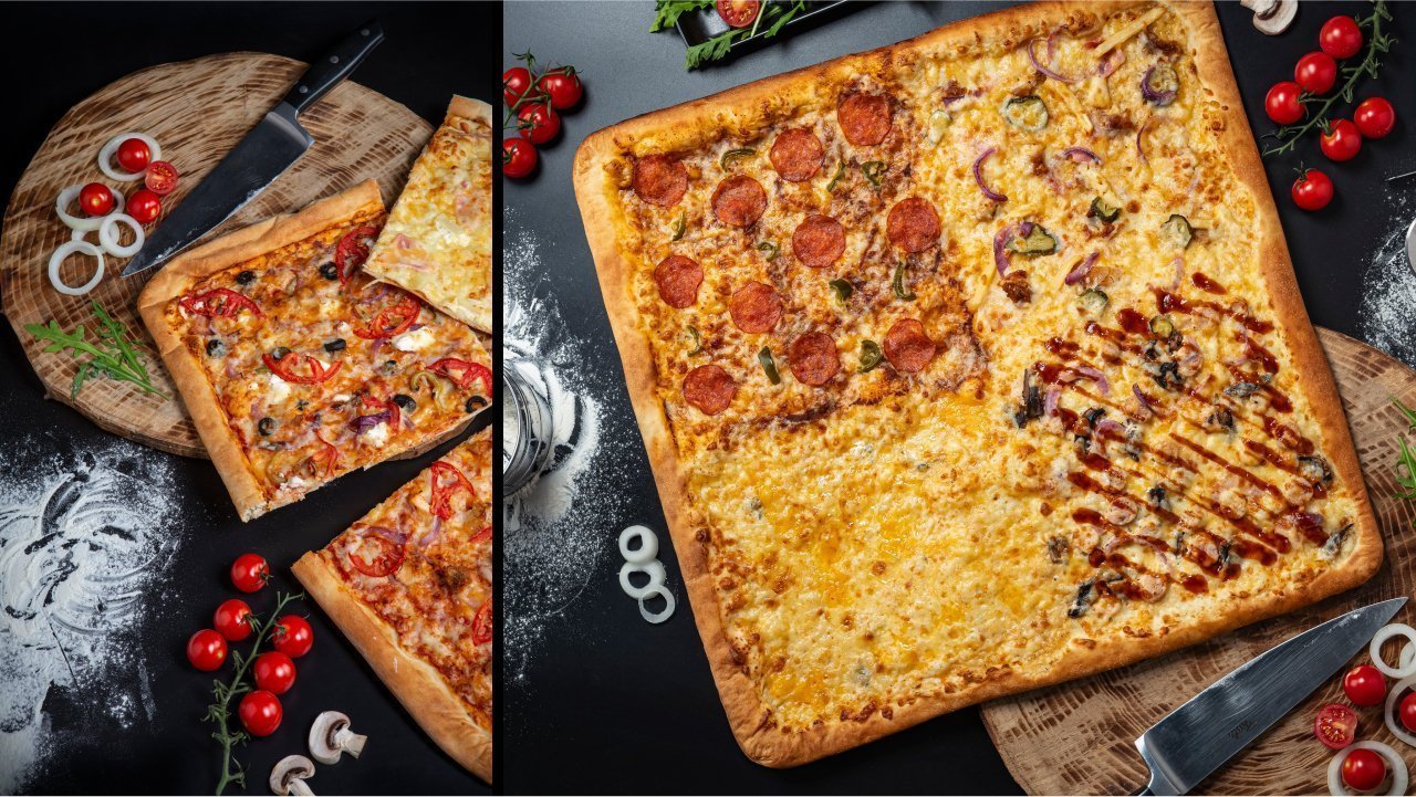 Необходимо было отснять популярные позиции из меню пиццерии, а именно пиццу, суши и роллы. Требования к фотографиям были стандартные для фуд-съемки: изображения должны быть красочными и аппетитными.
