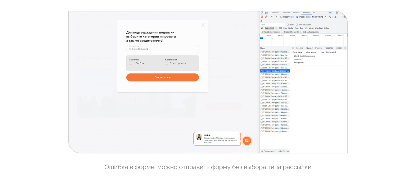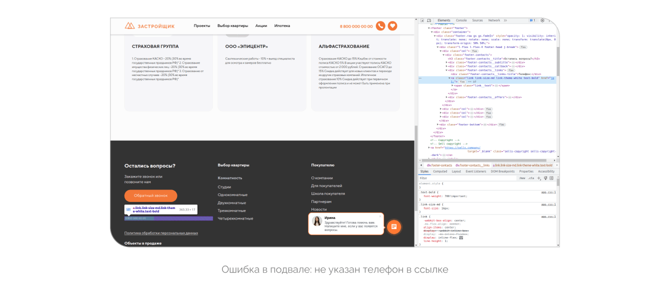 На сайте заказчика практически на всех страницах есть формы обратной связи (лид-формы), чтобы клиент мог быстро отправить заявку на осмотр понравившегося объекта. Здесь важно проверить следующее:
