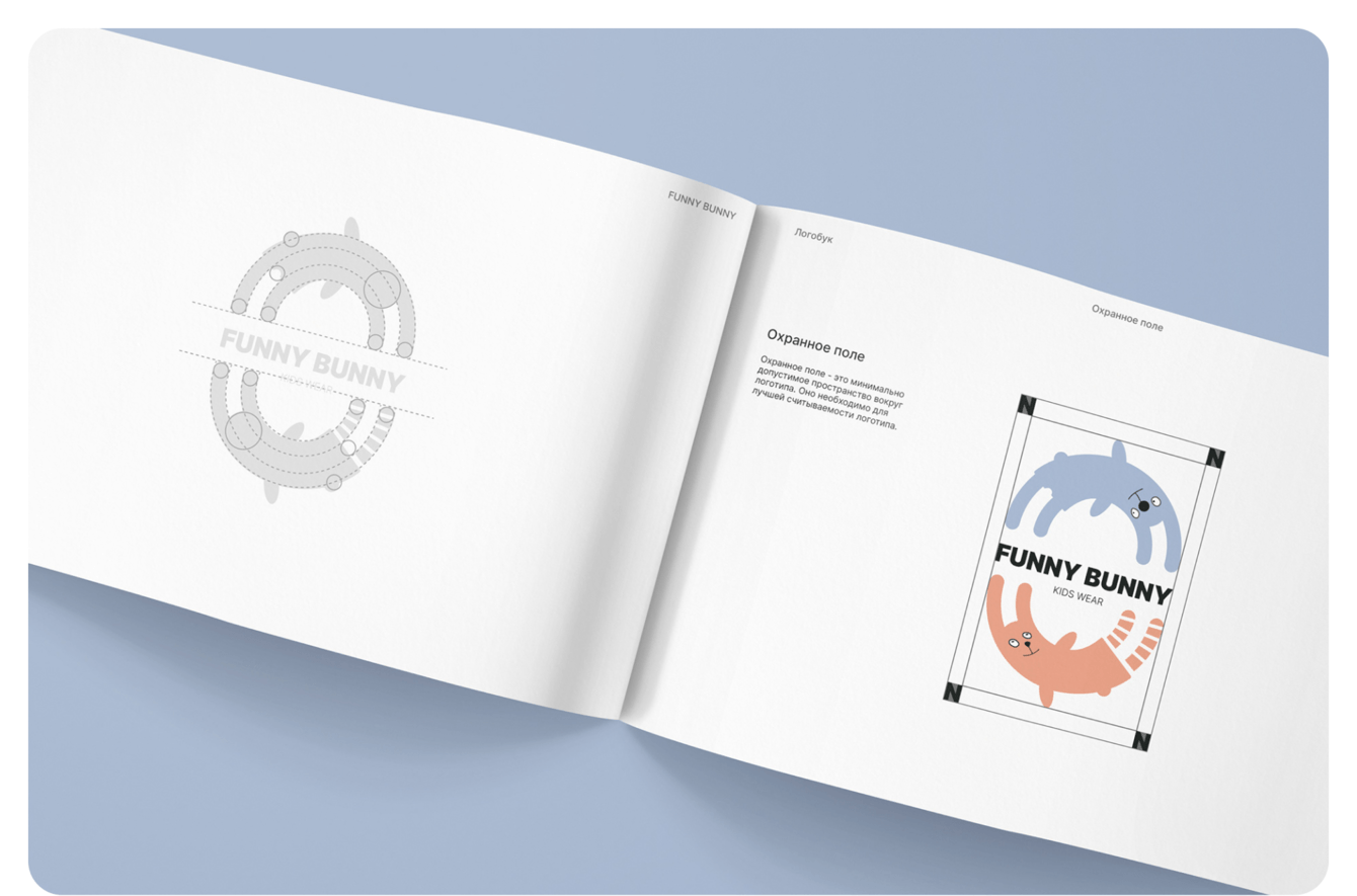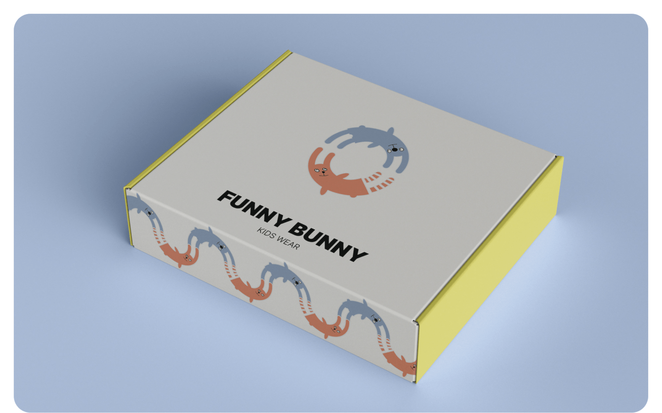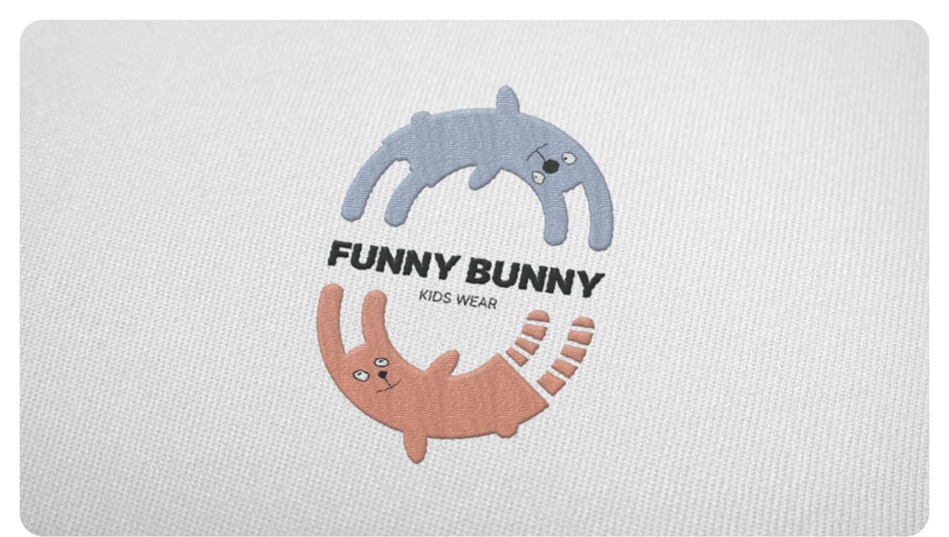 Название бренда "Funny Bunny" отражает сочетание нежности и игривости, воплощая в себе минималистичный дизайн, однотонные цвета и яркие принты. В концепции бренда "Funny Bunny" два зайца, изображенные в логотипе, символизируют игру и динамичность. Мы разработали фирменный стиль, в котором логотип с изображением двух зайцев одного голубого и другого морковного символизирует дружелюбие и радость. Паттерн добавляет веселья и игривости. Цветовая палитра создает гармоничное и запоминающееся впечатление, подчеркивая мягкость и радость.