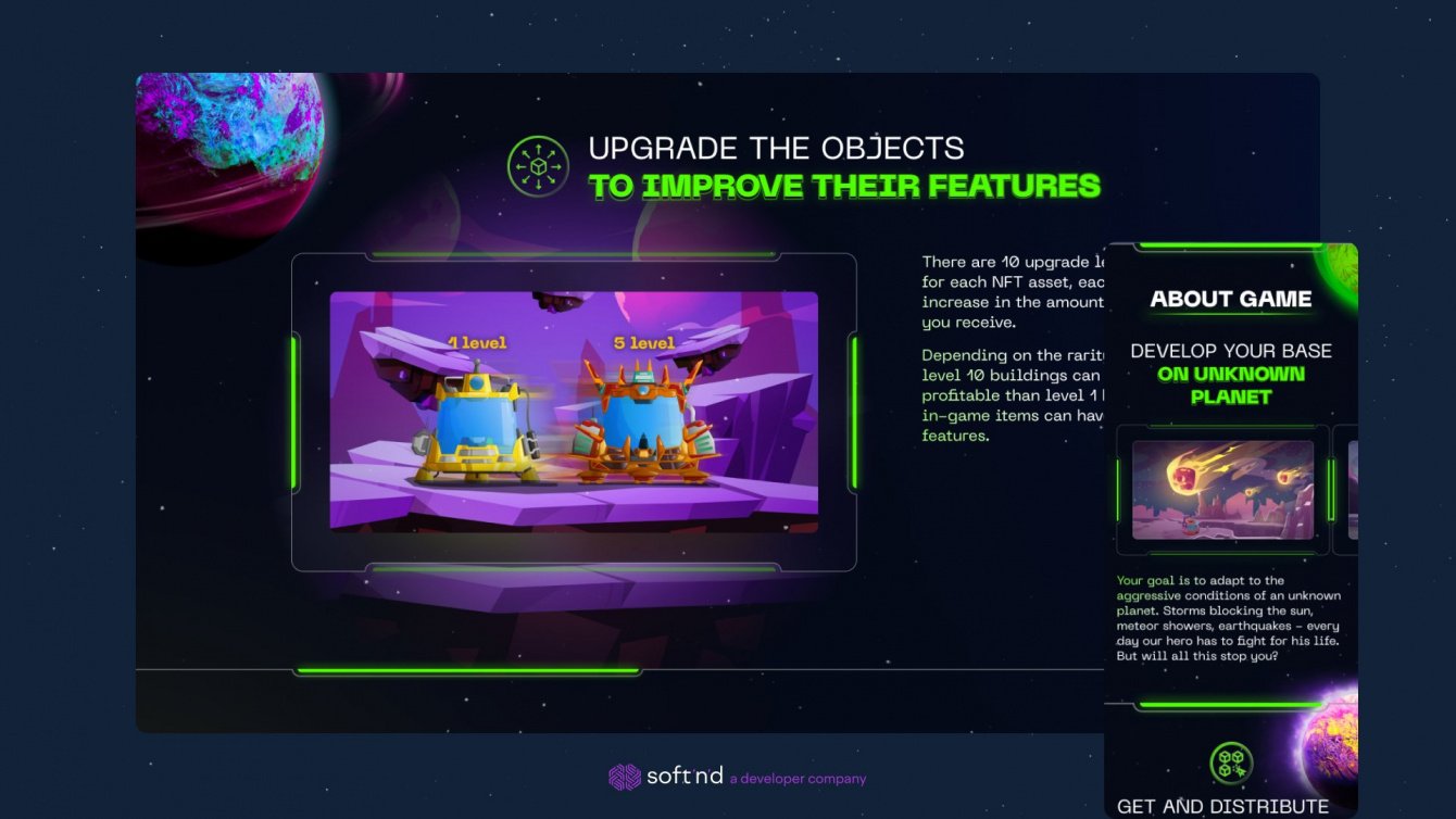 В общем, от нас нужно было создать качественный сайт, написать смарт контракты для внутриигровых операций, ну и конечно же создать саму игру со встроенными NFT.