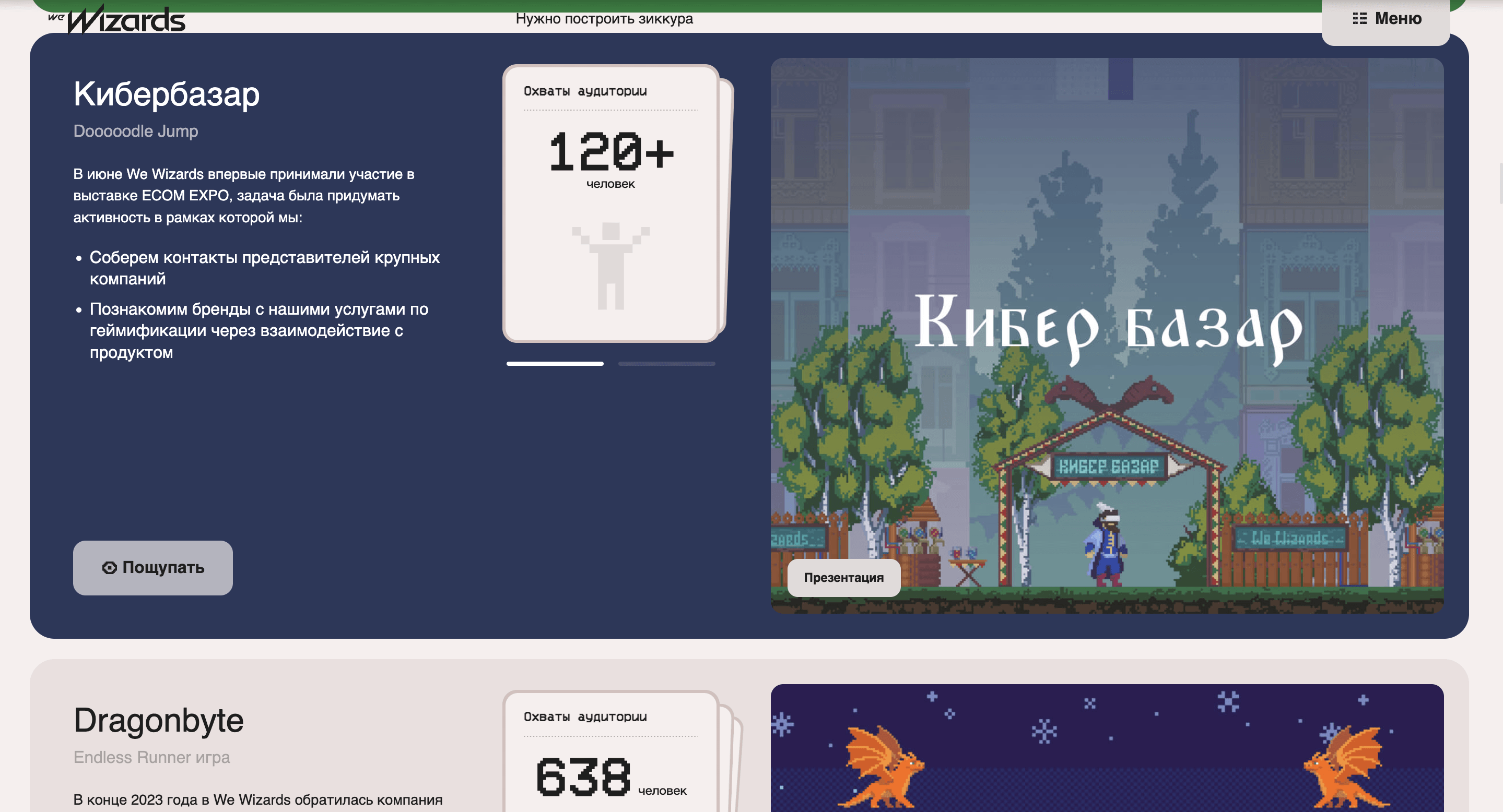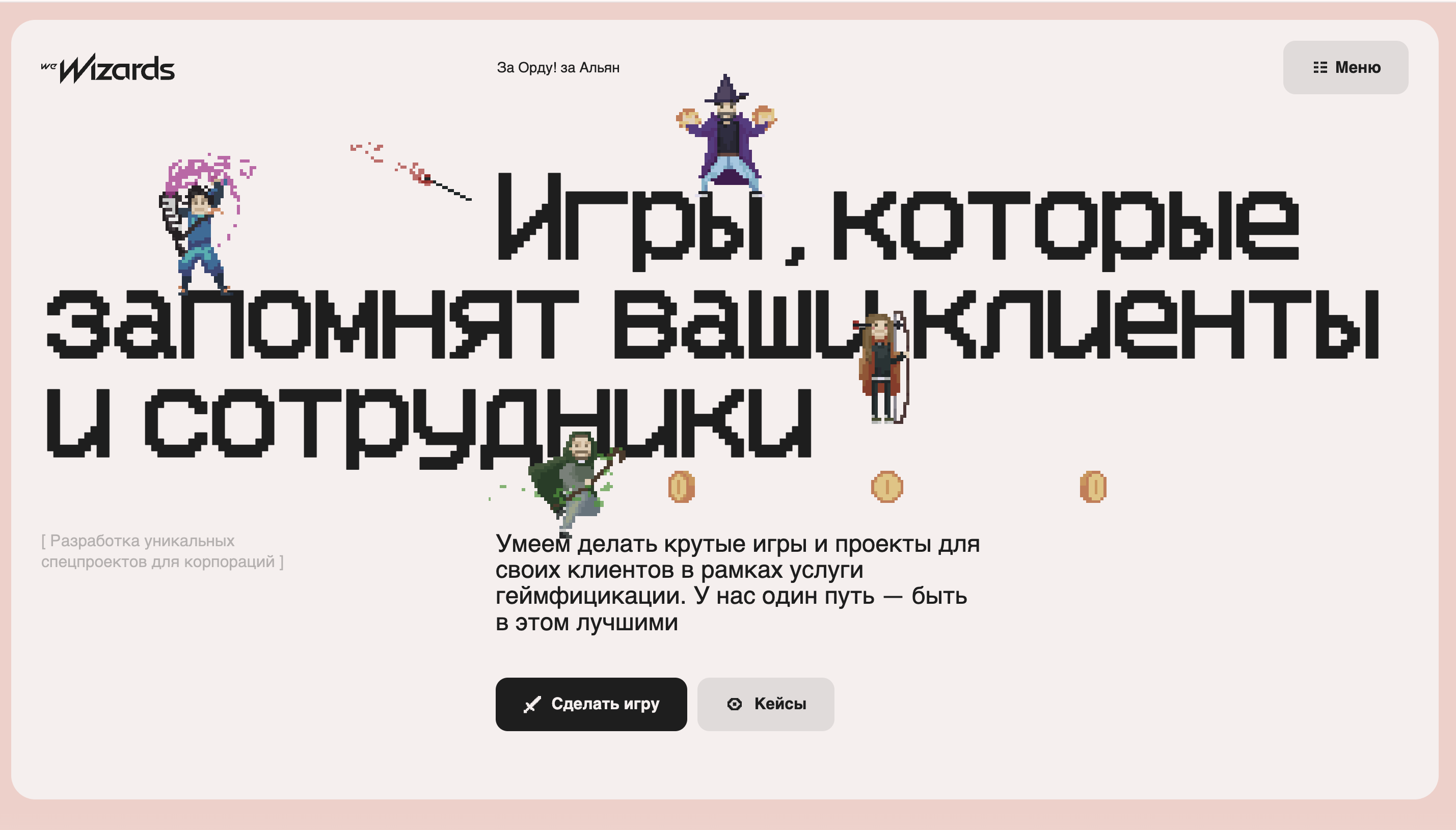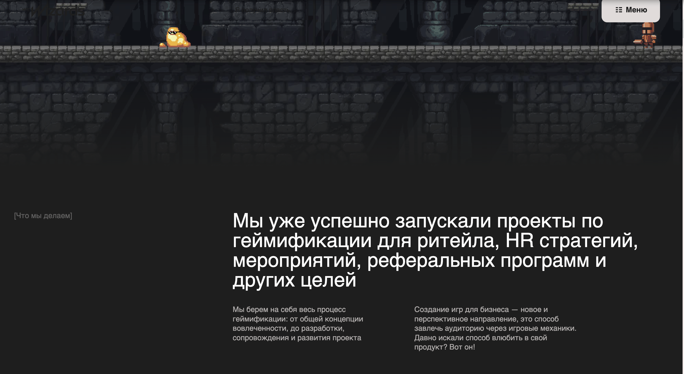 Геймдев — отдельный юнит We Wizards. Нужно было создать сайт, который отразит наш подход к работе и четко попадет в ожидания ЦА.