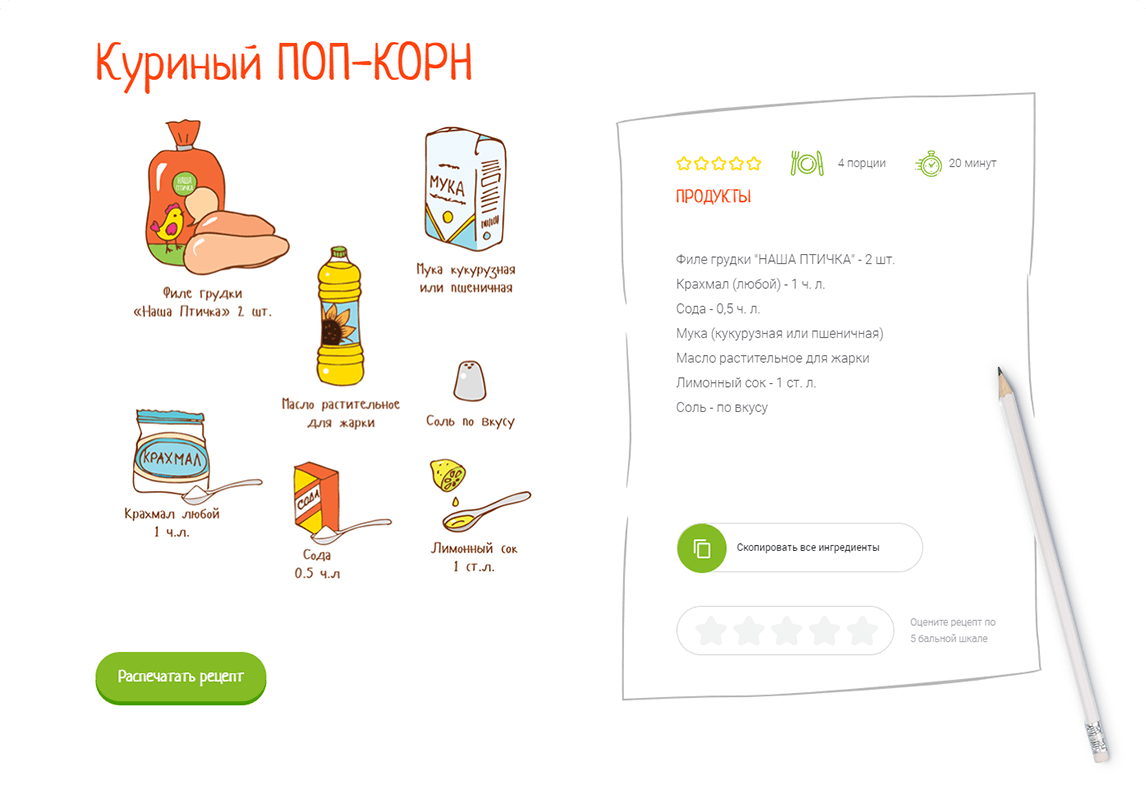 2) создали имиджевый сайт с анимациями для нового бренда "Наша Птичка". Придумали и реализовали игровую механику для детей в виде онлайн раскраски. Сделали удобный и наглядный раздел с рецептами.