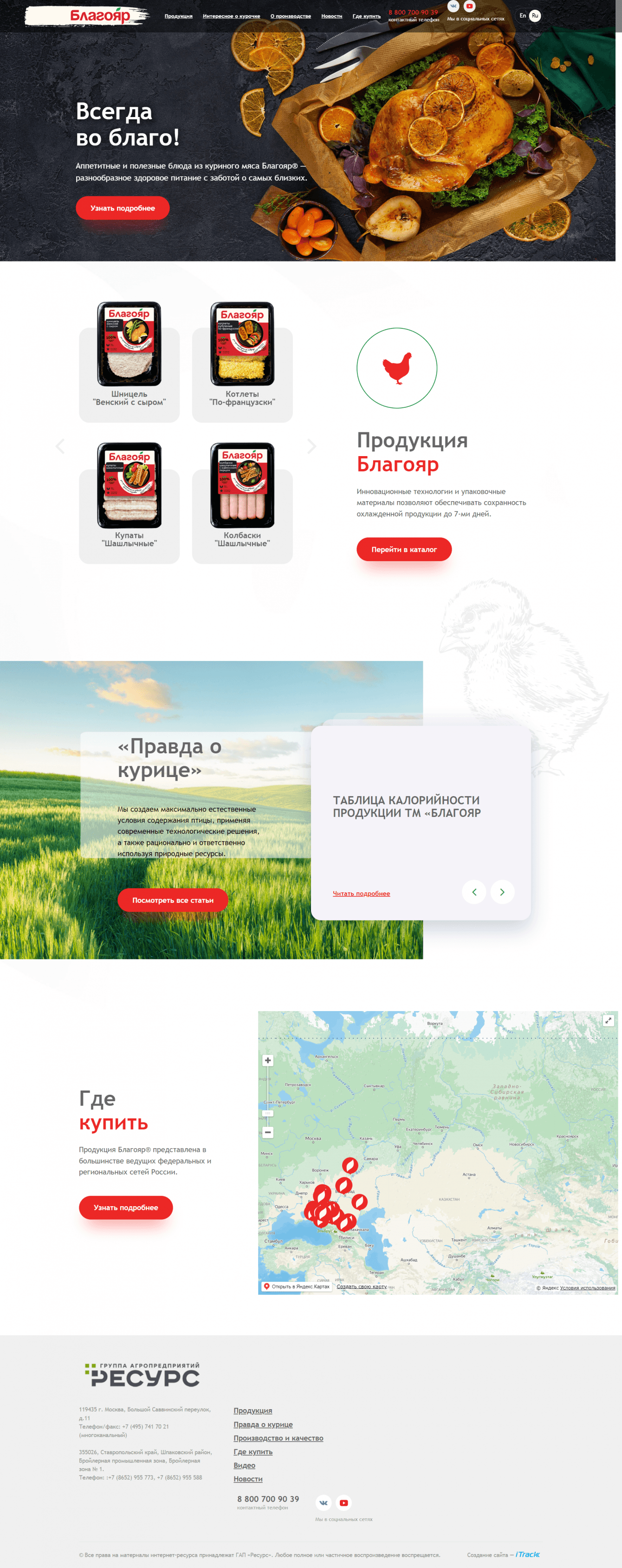 Создать три сайта для брендов группы агропредприятий: флагманского бренда "Благояр", халяльной продукции из разных видов мяса "AN-NOOR", яркого бренда для Центрального региона России "Наша Птичка"