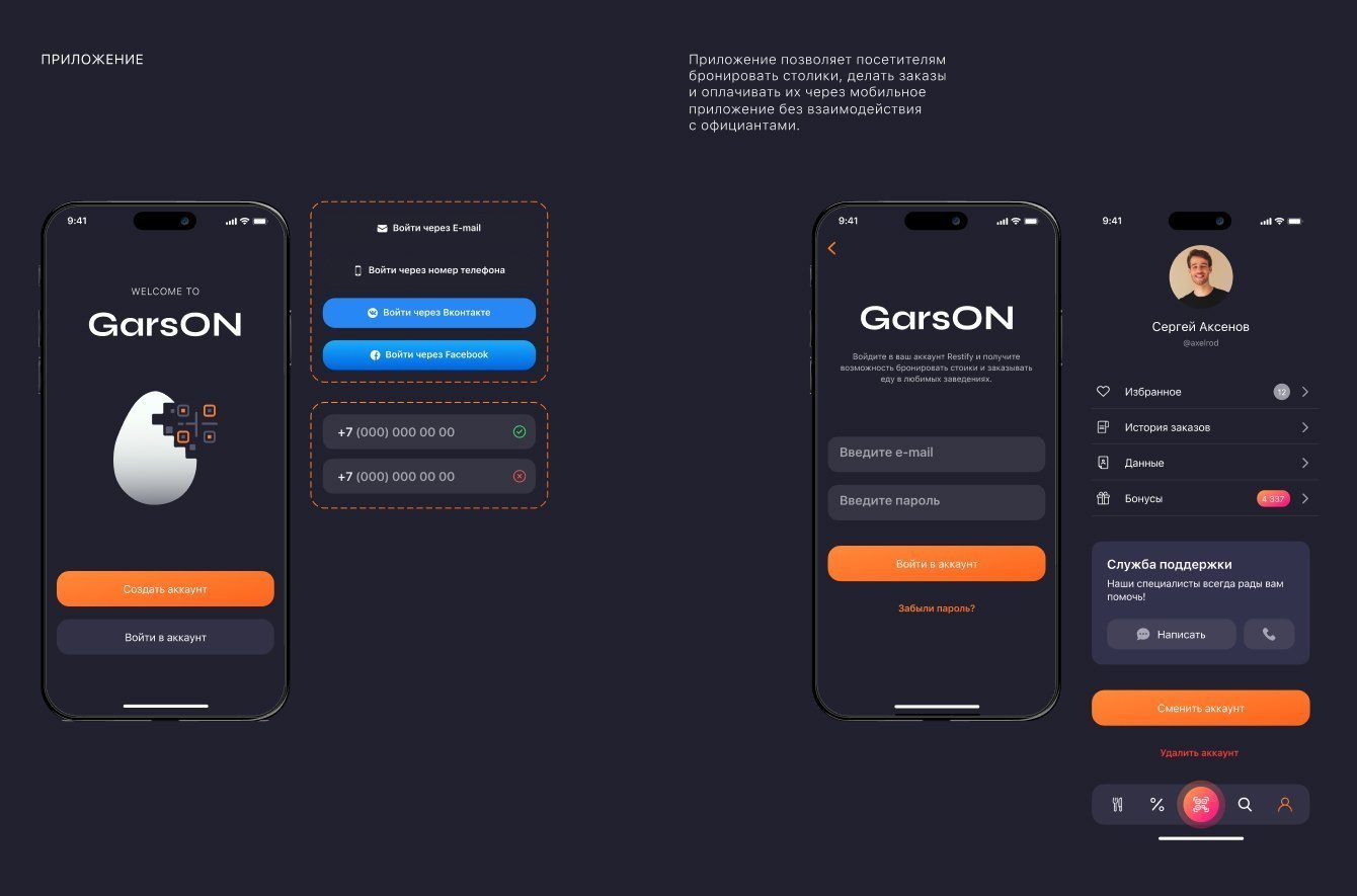 Разработка концепции «Garson» представляет собой комплексное решение готовое к процессу разработки и дальнейшему масштабированию В ходе проекта были достигнуты все поставленные цели по созданию инновационной системы, объединяющее потребности бизнеса и ожидания пользователей. Особую ценность представляет дизайн-система, которая обеспечивает гибкость и масштабируемость решения.
