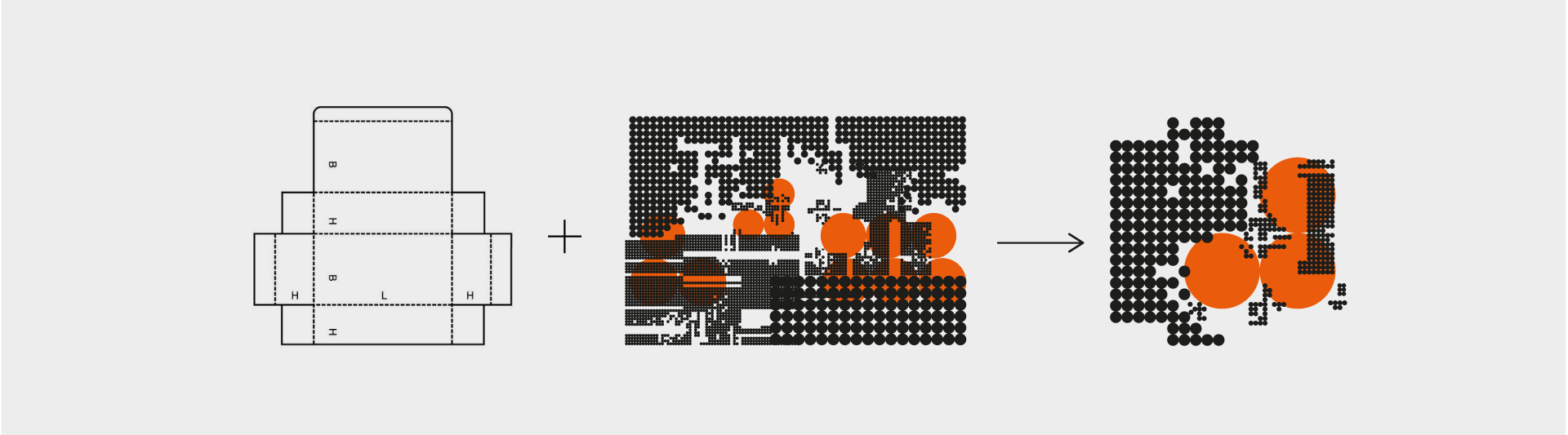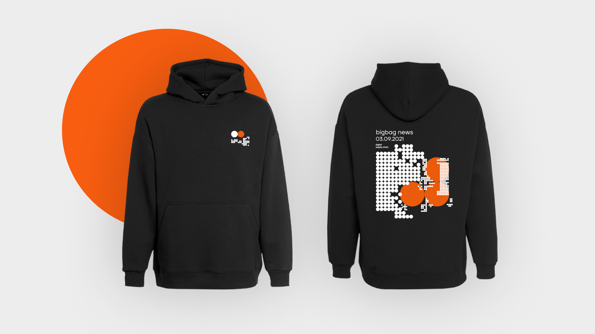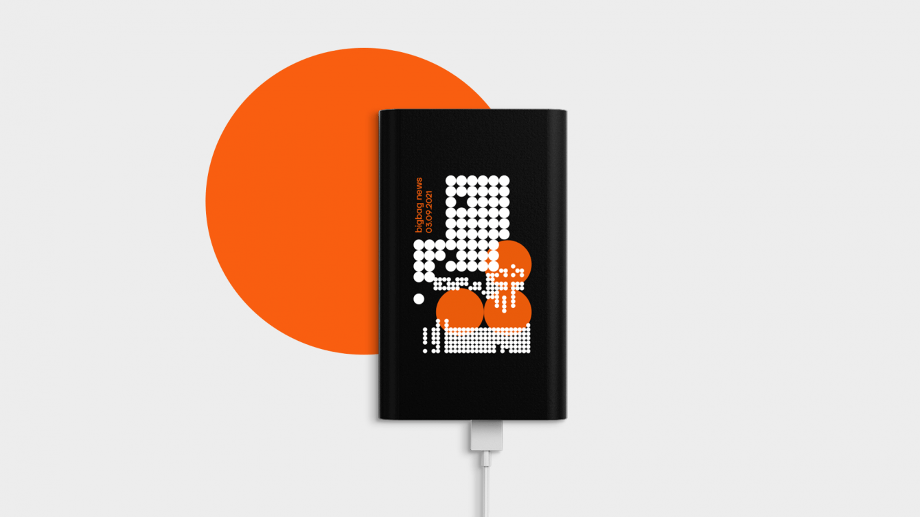 Задача агентства — создать концепт, который отразит цели и суть работы центра. В основе оформления лежит идея паттерна-микросхемы и точки как символа цифровой среды. Паттерн из точек помещается в маску в форме развертки коробки. Таким образом концепция становится многомерной и объединяет три смысла: хранение, логистику и цифровую систему. Надпись «Big bag news» помогает сделать мерч персонализированным и «своим»: Bigbag — неформальное название, которое сотрудники выбрали для себя и своего комьюнити.
