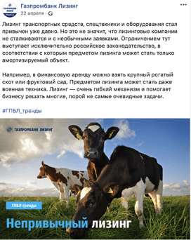 Рассказать в соцсетях о преимуществах лизинга для бизнеса и сформировать экспертный образ заказчика как в финансовой сфере, так и в отраслях его клиентов.