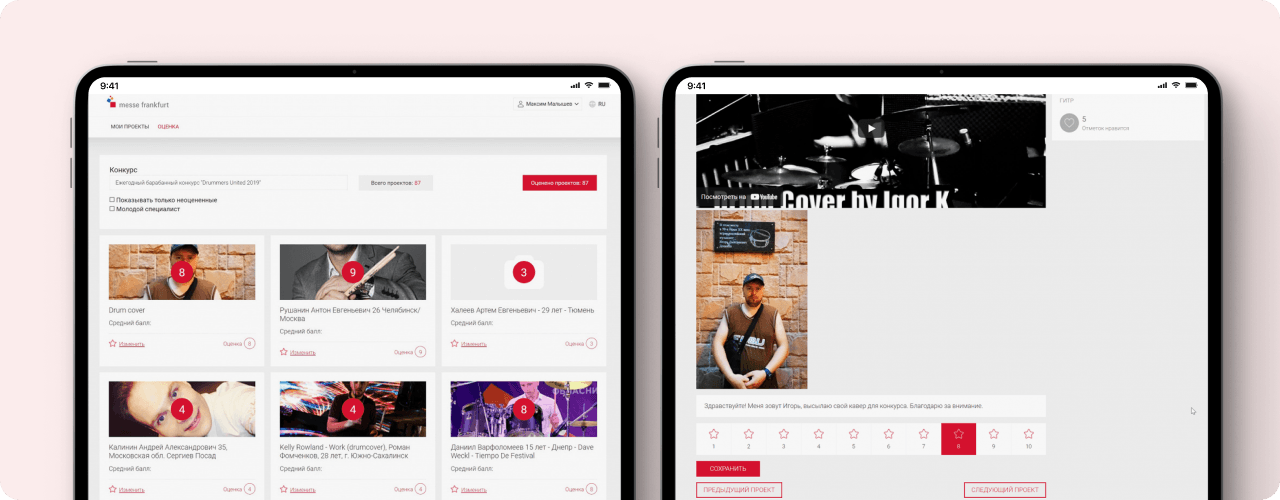 Если мероприятие предполагает проведение конкурсов и голосований, то этот функционал также реализован. В меню предусмотрены добавление проекта на конкурс, модерация работ, голосование посетителей лайками, голосование жюри, экспертный совет.