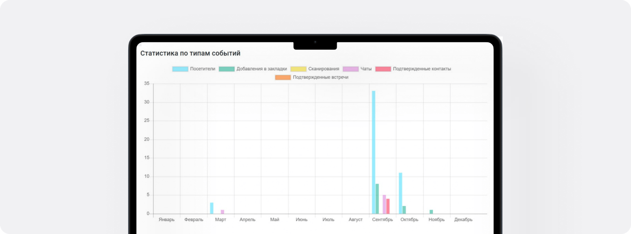 Существует статистика использования платформы по разным показателям: отчеты по конкурсам, просмотр статистики прошедшей выставки, отчеты для менеджеров, организаторов и участников выставки. Имея такие данные, можно развивать выставку. Например, анкета участника позволяет компании проанализировать, кто посещает его мероприятие, насколько востребована заявленная тематика и насколько удобен именно такой формат проведения.