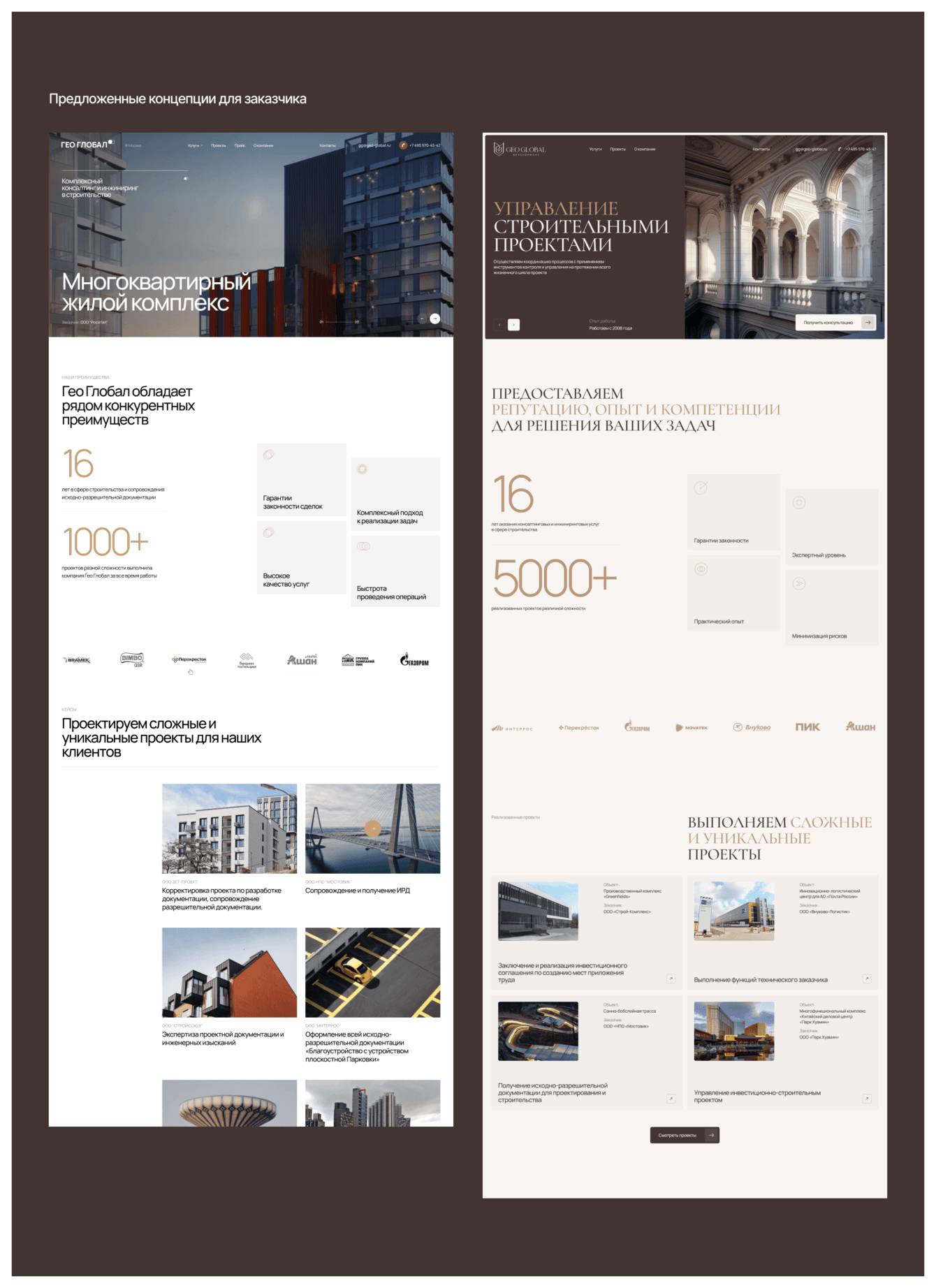 Клиент принял решение остановиться на втором варианте, так как он больше соответствует имиджу компании, который клиент стремится передать своей аудитории и отражает профессионализм и серьёзный подход, что важно для представителей власти и застройщиков, ориентированных на эффективные и надёжные решения.