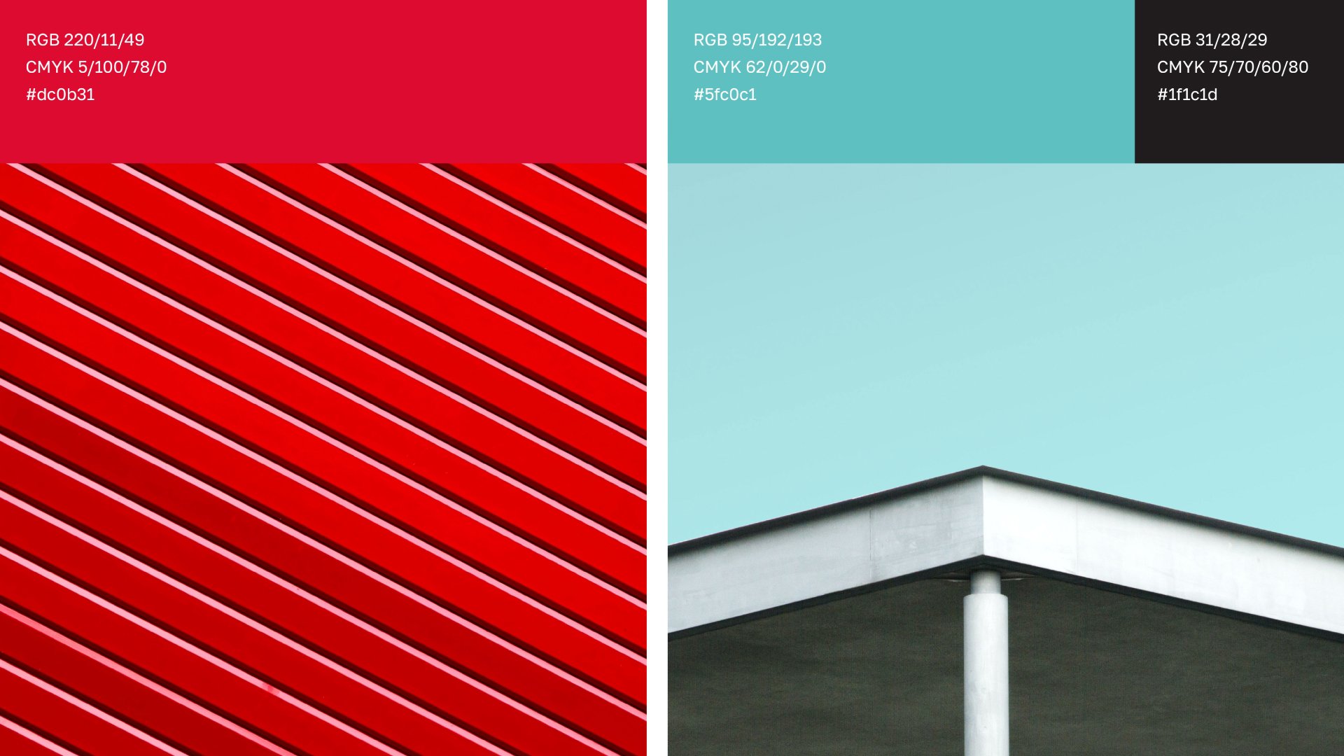 Пара бирюзового с красным создают ощущение дружелюбного бренда, энергичного и уравновешенного.