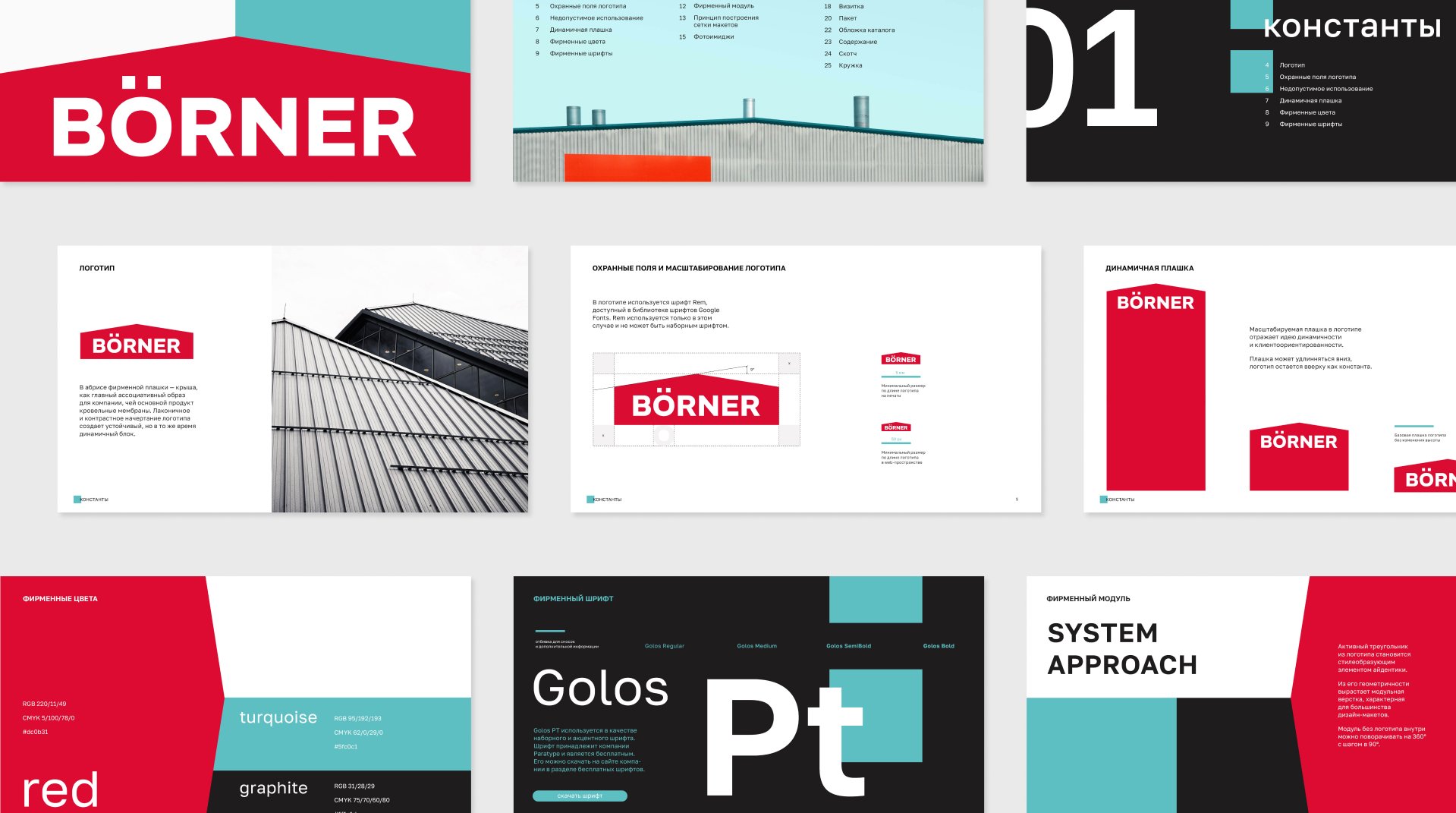 Подавляющее большинство наших проектов по созданию айдентики и фирменного стиля завершаются составлением руководства по их использованию. Этот проект для не стал исключением. Гайдлайн, лаконичный и четкий, как сам стиль, зафиксировал ключевые правила и рекомендации по работе с обновленными визуальными атрибутами бренда Börner.
