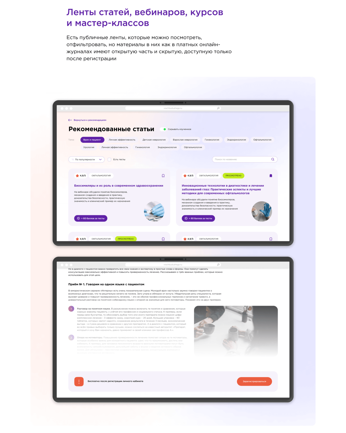 Первые шаги к созданию были сделаны еще в 2020 году, в год COVID-19. Коллеги записали огромное количество вебинаров, затем появились курсы на GetCourse и статьи для врачей.