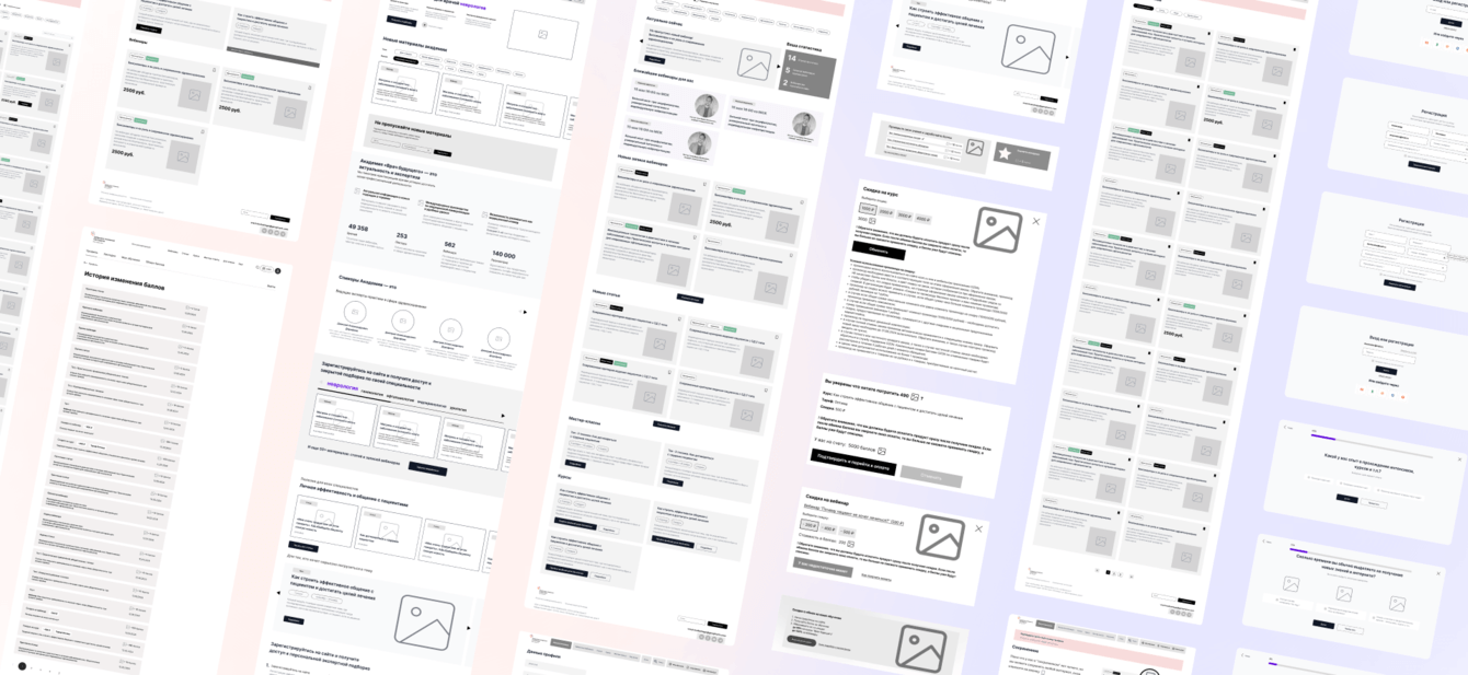 На старте проекта у нас было большое кол-во материалов от заказчика, за что огромная благодарность и мы дальше структурировали эти материалы и превратили в интерфейсы на прототипах.