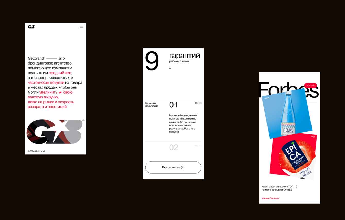 Айдентика GetBrand была крутая, но сайт выглядел… как сайт. Без акцента, без характера.