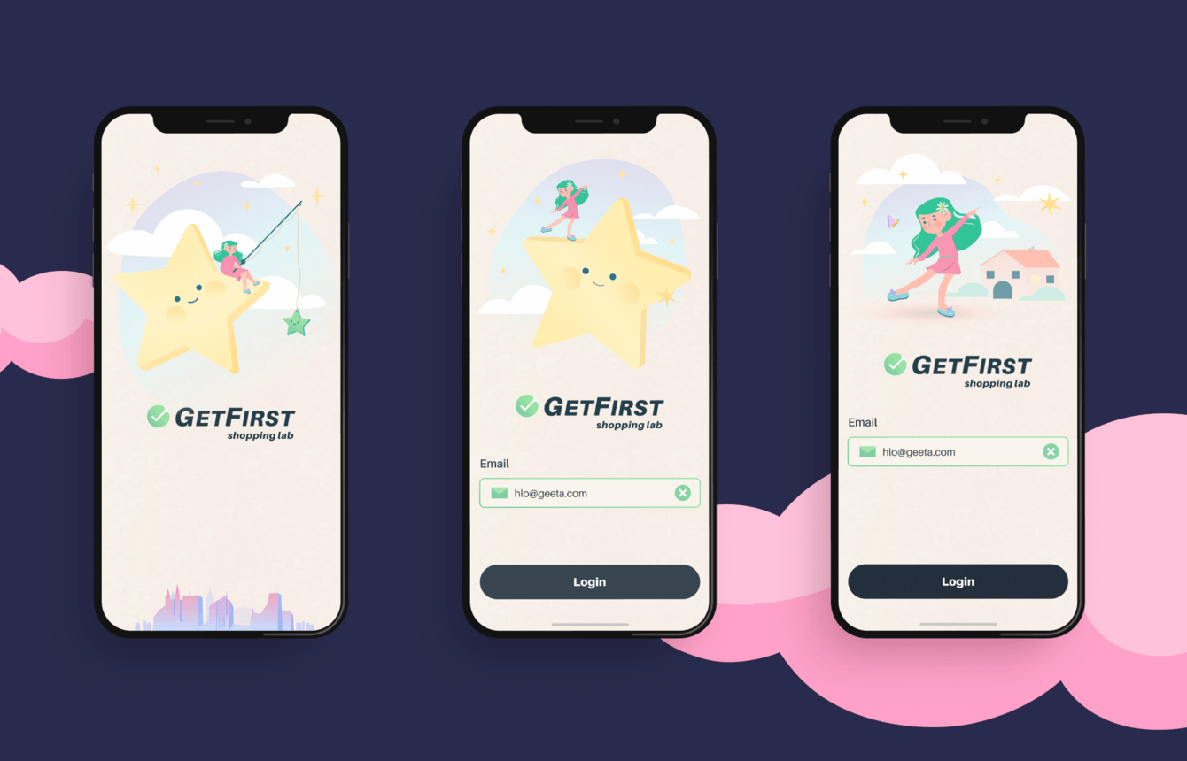 На приветственных экранах использован образ милой, игривой девочки, стоящей на большой звезде, что создает возвышенную, веселую и оптимистичную атмосферу.