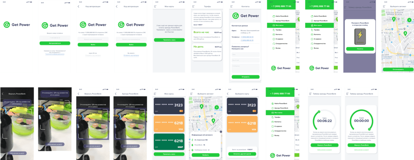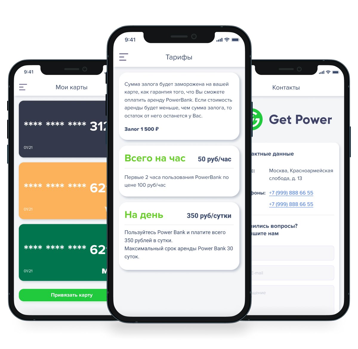 Почасовая аренда powerbank'ов: разработка мобильного приложения GetPower (iOS/Android), в котором:
