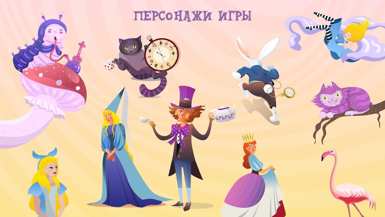 Мы разработали 5 локаций: «Лес», «Рождественская деревня», «Гостиная Гусеницы», «Королевский замок» и «Страна зимних чудес». Каждый раз, заходя в игру, пользователь попадает на одну из них и ищет три объекта: кролика, бутылочку «Выпей меня» и волшебный ключ.