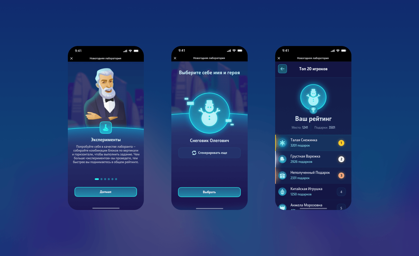 Это наш третий геймифицированный проект с Digital Lab. Игра «Новогодняя лаборатория» стала удачным примером работы двух команд. Нашей целью было сделать так, чтобы пользователи активно взаимодействовали с брендированным контентом. В результате игра работала и на укрепление лояльности наших действующих клиентов, и на позитивное взаимодействие с абонентами других операторов
