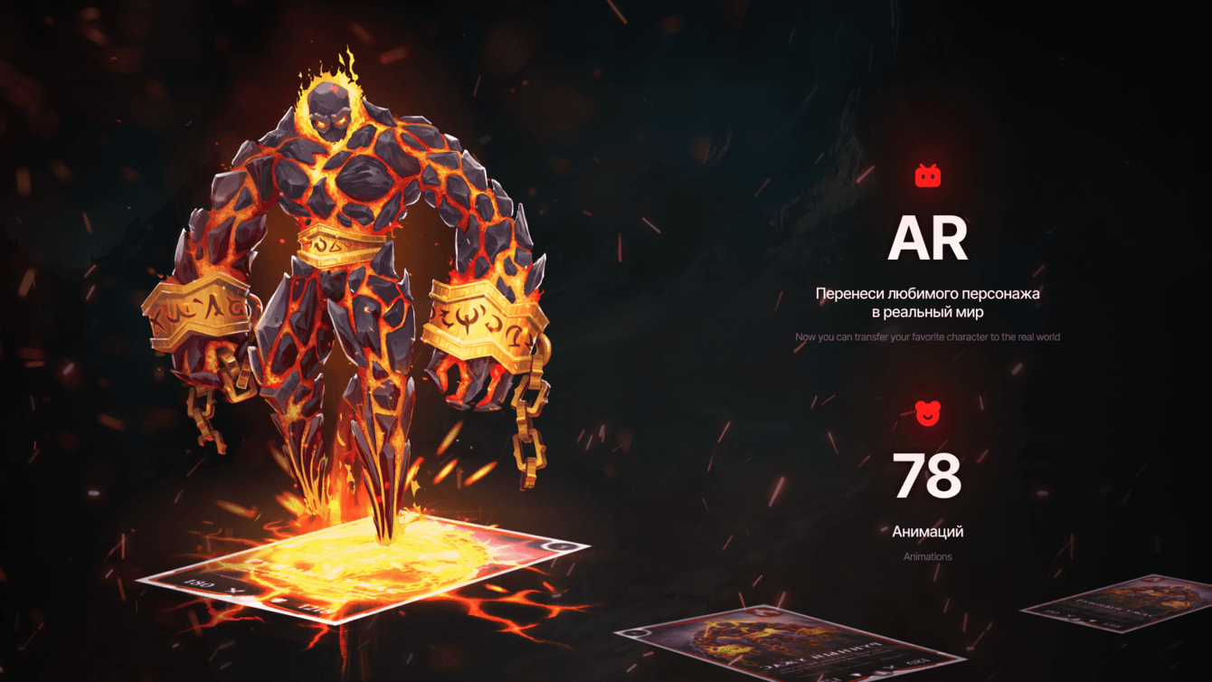 В качестве digital-составляющей было разработано мобильное игровое приложение, которое позволяет пользователям сканировать физические карточки, добавлять их в коллекцию и сражаться с помощью своей команды чемпионов в дополненной реальности.