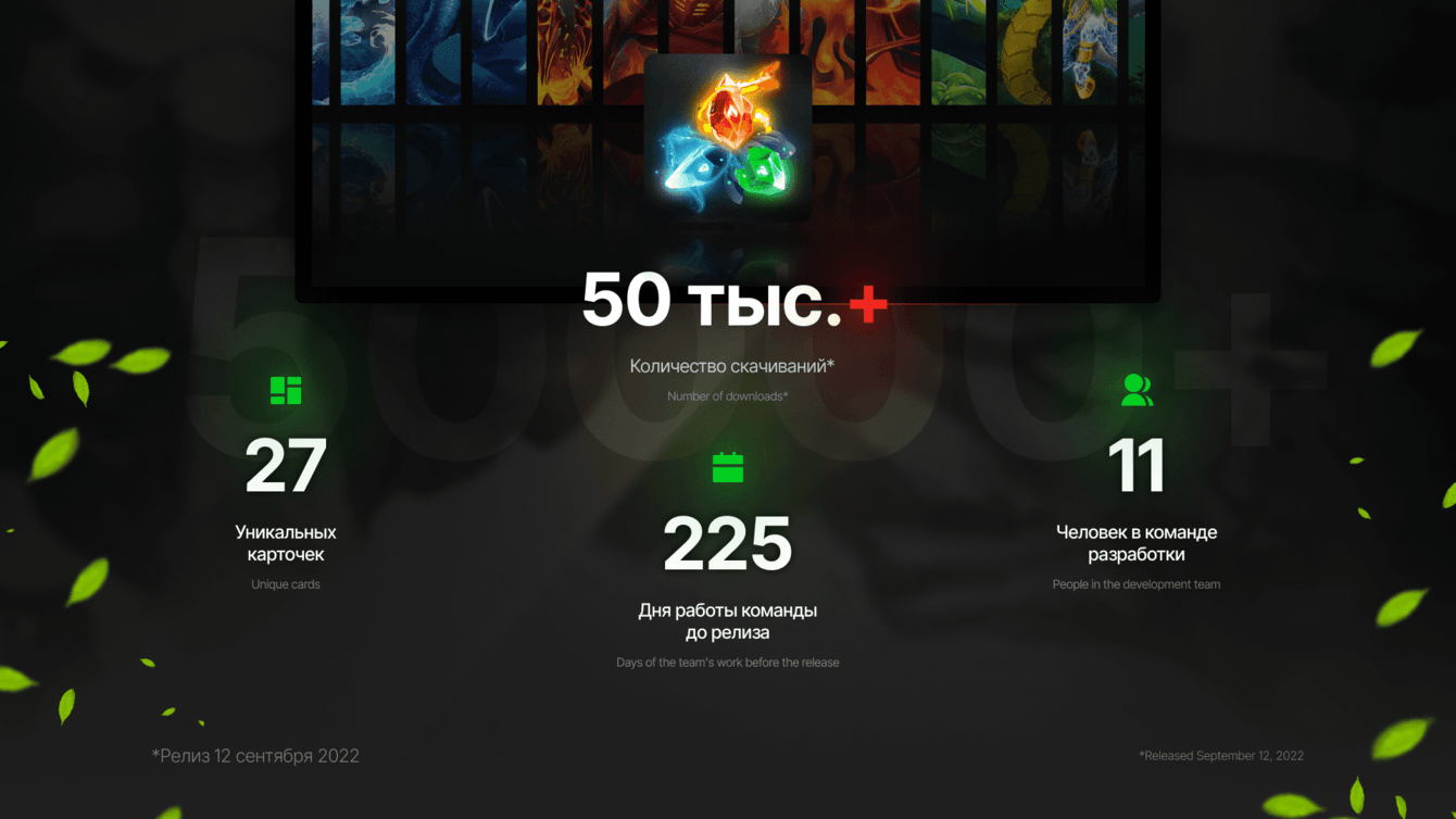 Мы полностью придумали данную вселенную, разработали персонажей, их внешний вид, а также проработали все механики, баланс и экономику. Наши художники отрисовали карточки, альбом и прочий визуал на очень высоком уровне, а мобильное приложение вовлекает не только детей, но и взрослых.